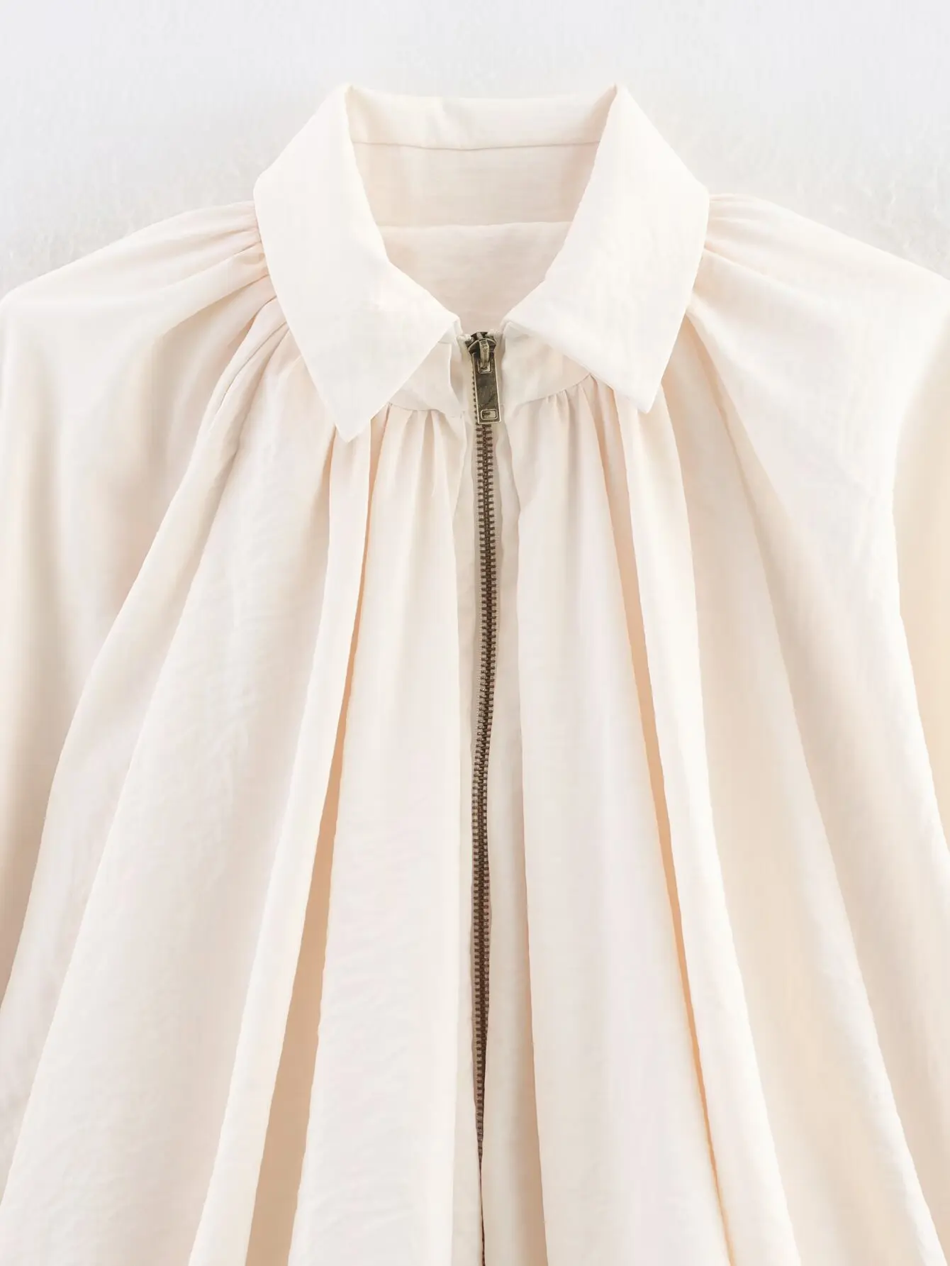 MYST&ZA2025 Nuovi prodotti estivi Serie tinta unita da donna Cappotto da pilota con maniche a sbuffo allentate con risvolto Sezione sottile