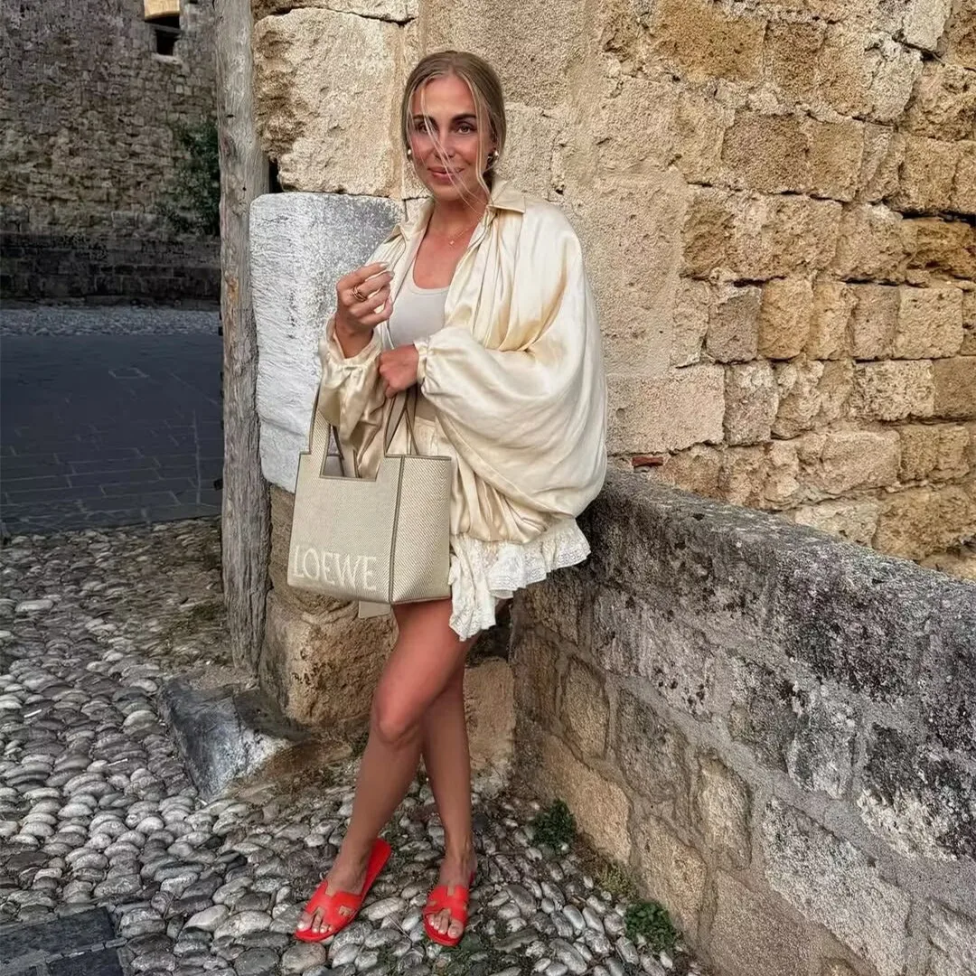 MYST&ZA2025 Nuovi prodotti estivi Serie tinta unita da donna Cappotto da pilota con maniche a sbuffo allentate con risvolto Sezione sottile