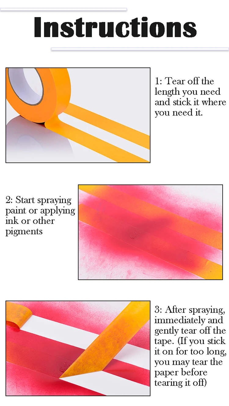 3: Dopo la spruzzatura, strappare immediatamente e delicatamente il nastro.(Se lo attacchi per troppo tempo, puoi strappare la carta prima di strapparla)