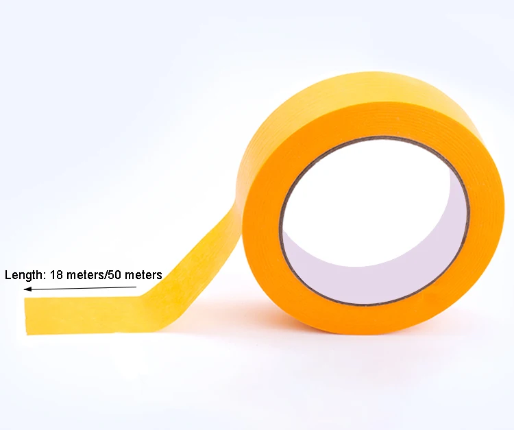 1 pz 18 M/50 M Nastro adesivo giallo Nastro adesivo Carta strutturata Vernice per auto Decorazione Strappo a mano senza soluzione di continuità senza segni per la verniciatura