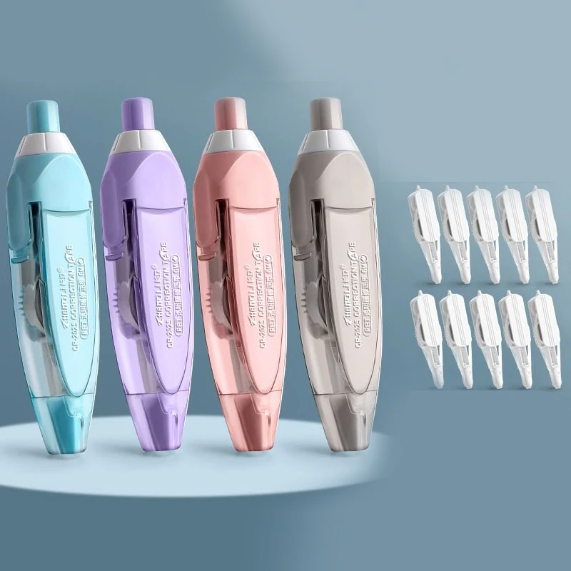 ●Facile da usare: il nastro di correzione adotta il design della penna, premi il pulsante superiore da usare. Posiziona il cavo di correzione nel luogo da correggere, premi delicatamente 75-90 gradi, sposta lungo la direzione di correzione, pausa alla fine della posizione di correzione, E sollevare leggermente verticalmente a 90 gradi con una piccola pressione per completare la correzione.