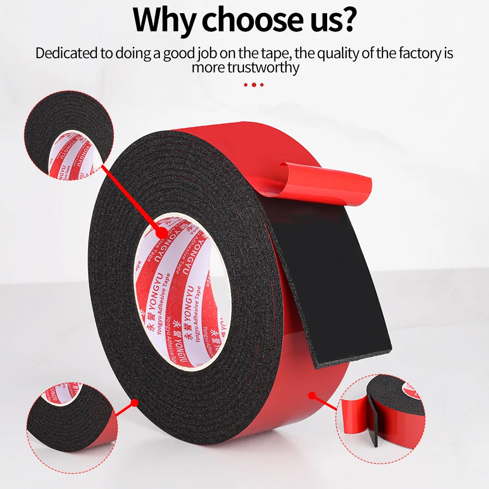 Nastro biadesivo in schiuma nera super resistente Nastro adesivo per montaggio morbido in spugna per porte e finestre Nastri protettivi fissi anticollisione