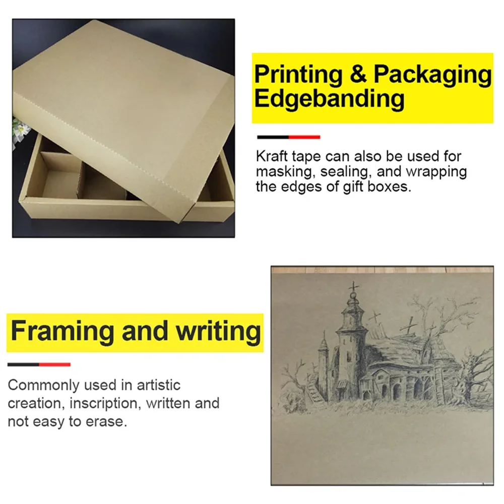 Nastro di carta Kraft da 30 m Migliorato attivato dall’acqua Forte adesivo Cornice per foto Sigillatura Fissa scrivibile Imballaggio in cartone Decorazione per il trasporto