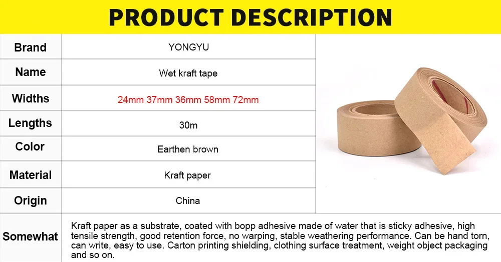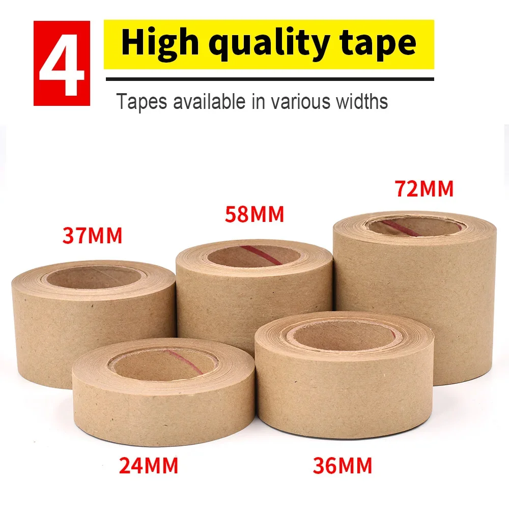 – Nastro migliorato attivato dall’acqua, strappabile a mano, silenzioso, facile da usare, eccellente resistenza alla trazione.