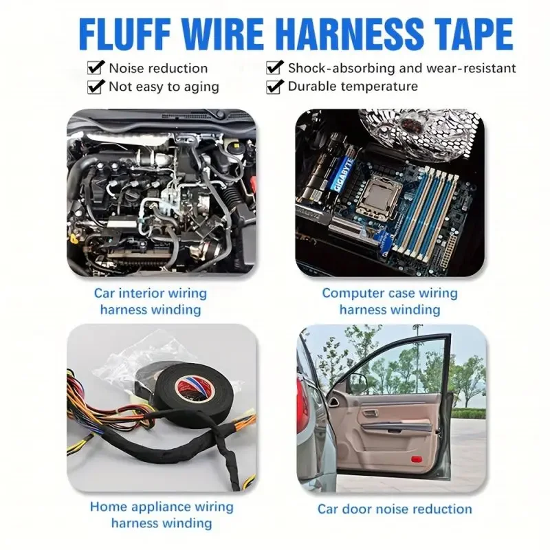 Eccellente flessibilità, impermeabile, ignifugo e isolante elettrico. Può essere strappato a mano e facile da usare. Adatto per l’uso del cablaggio interno di automobili e può ridurre il rumore