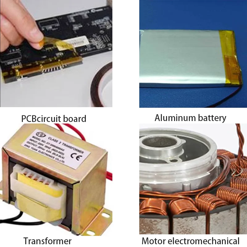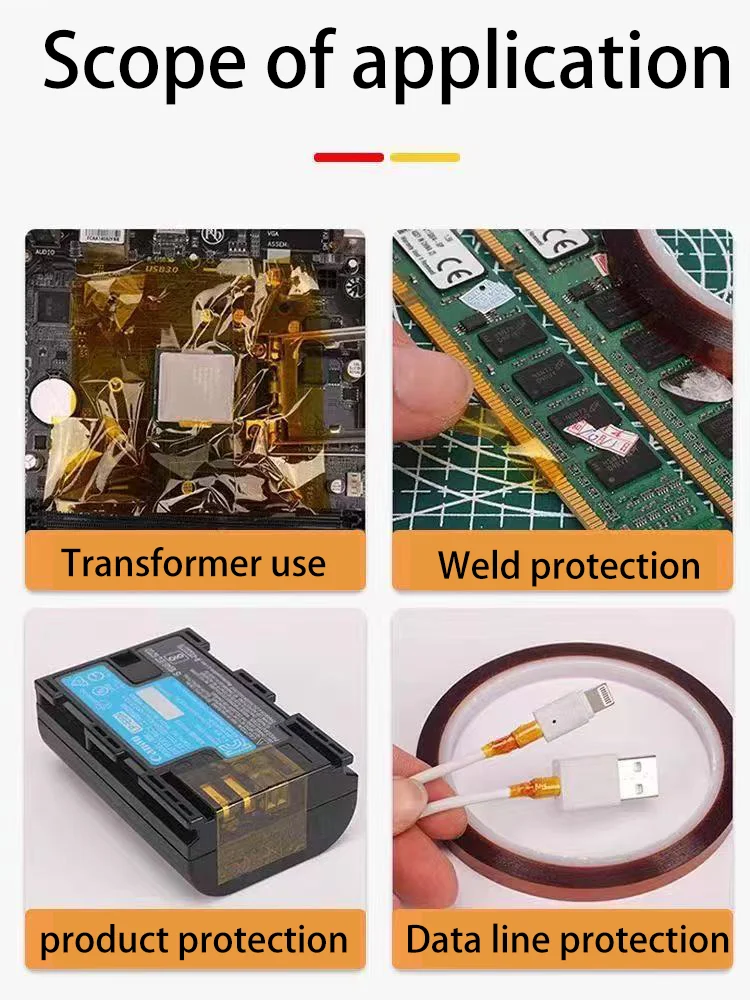 L’articolo è un nastro semplice e pratico, che è principalmente realizzato con materiali durevoli in poliimmide e silicone e presenta un design autoadesivo su un lato per un facile da usare.È altamente resistente al calore e agli prodotti chimici, resistente alle forature e allo strappo alle alte temperature e offre prestazioni ottimane nell’isolamento elettrico e termico, e così è ampiamente utilizzato come trasformatore, motore, bobina, condensatore e alimentatore di conversione di frequenza.