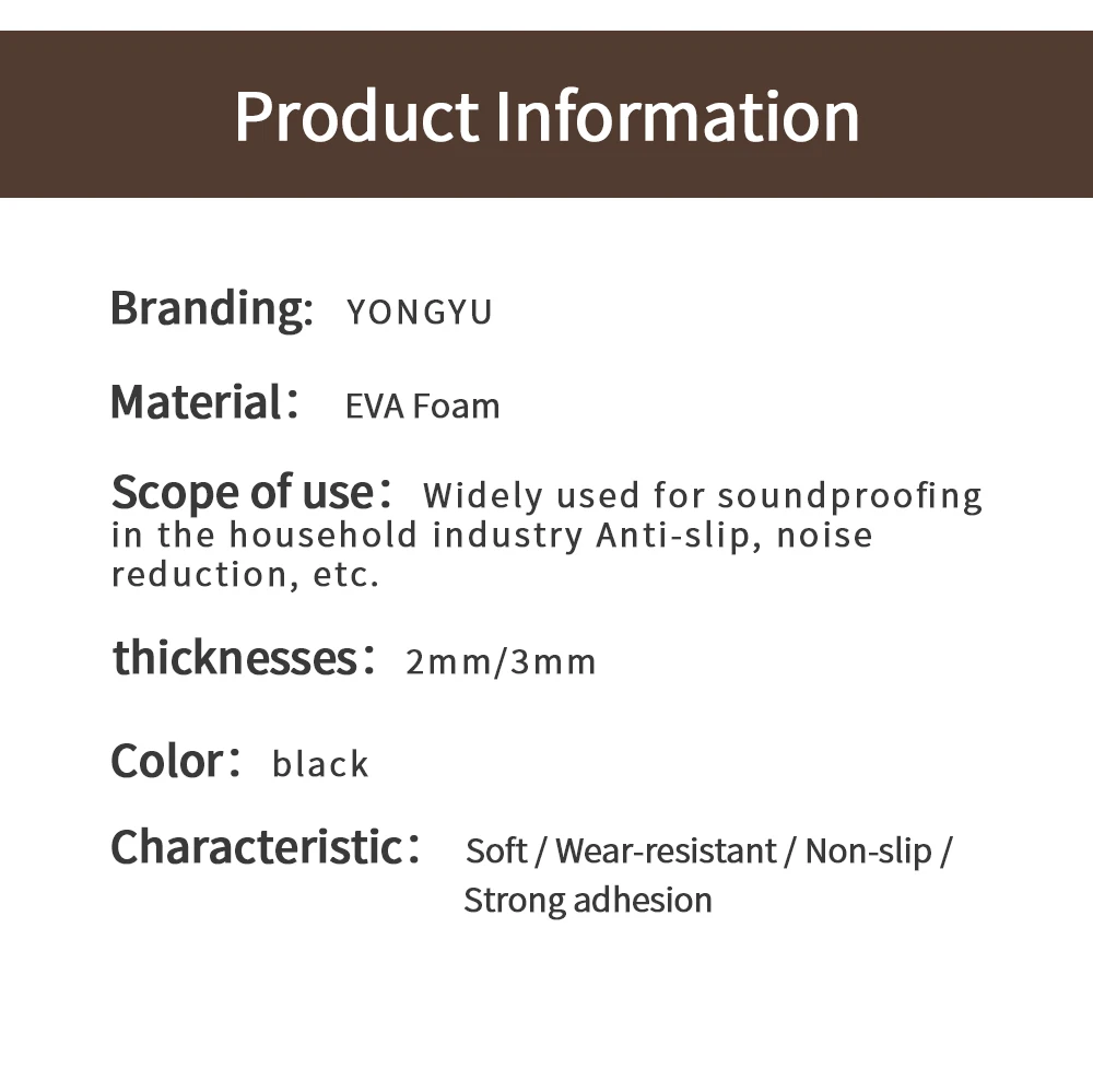 Nastro in schiuma nera monofacciale EVA per ammortizzazione Isolamento termico Non assorbente Aria condizionata Sistema di ventilazione per tubi dell’acqua Sigillatura Pubblicità Incollaggio Fissaggio Isolamento termico e freddo Isolamento acustico per auto