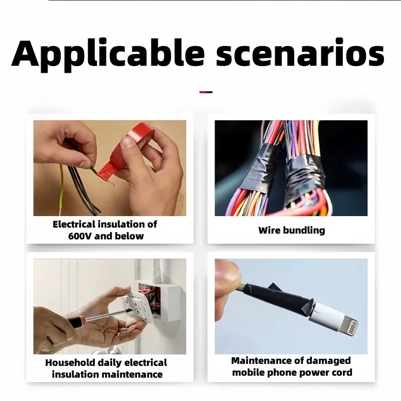 Suitable for insulation of various resistor parts. Such as wire joint winding, insulation repair, Transformer, motor, capacitor, voltage regulator and other electrical and electronic parts insulation protection. It can also be used for binding, fixing, tying, repairing, protecting and sealing in industrial processes