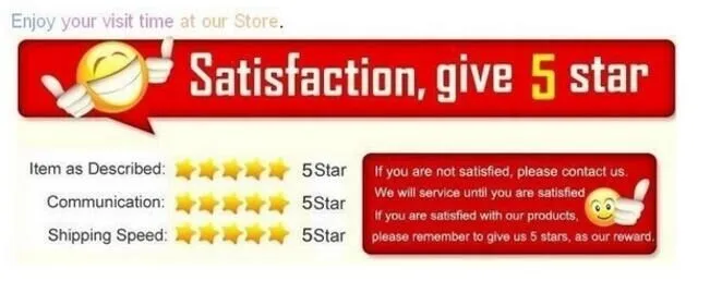 Your feedback is the power to push us move on,so please kindly take a few minute to leave us positive feedback if you are satisfied with our products and service.And we will react the same immediately!If you are not satisfied with us,please kindly tell us the reasons and details.We will try to find the best solution to r? e the problem,but please DON NOT leave the negative or neutral before we do this.Thanks!^_^