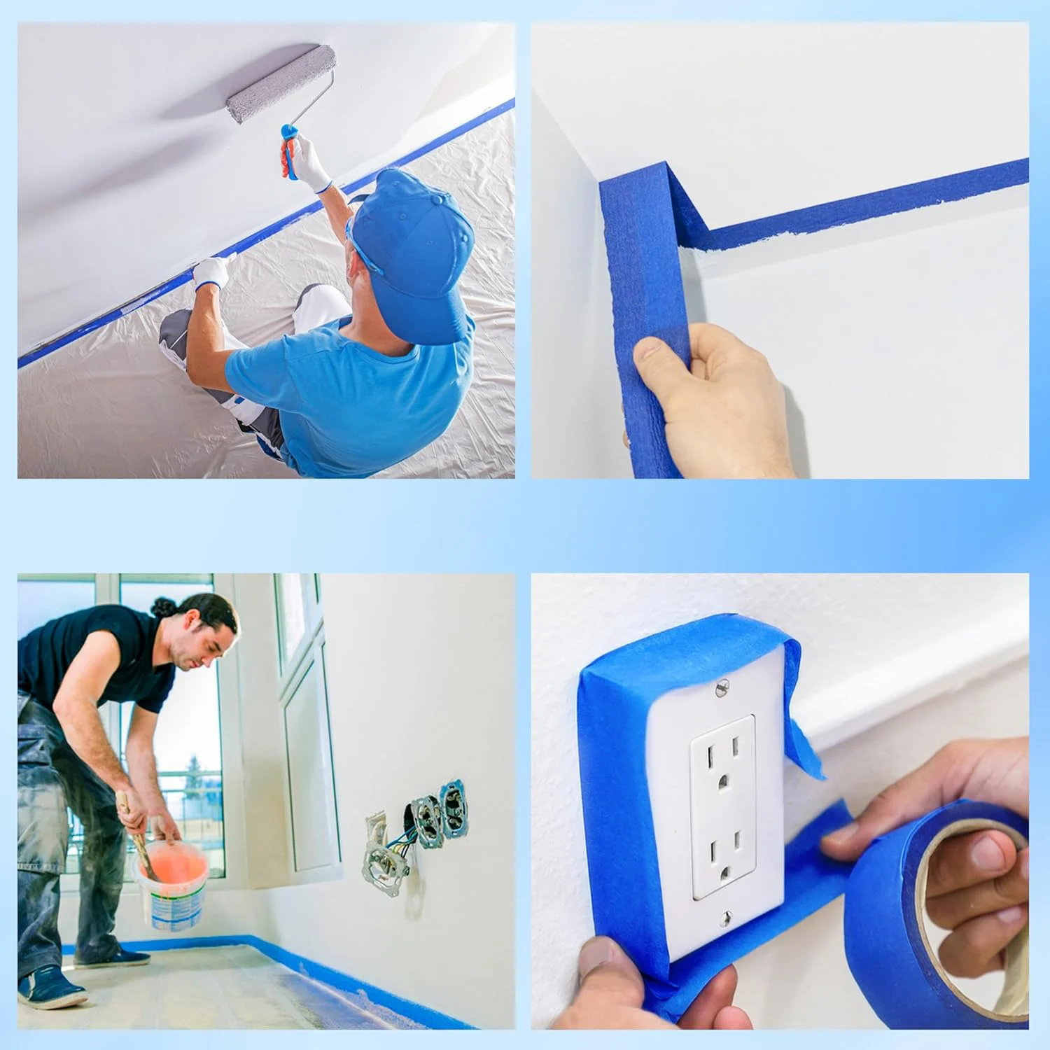 Nastro per mascheratura per pittore blu da 20/400 m per pittura murale Artigianato Pulizia delle costruzioni Mascheratura multisuperficie Nastro per pittore a rimozione facile