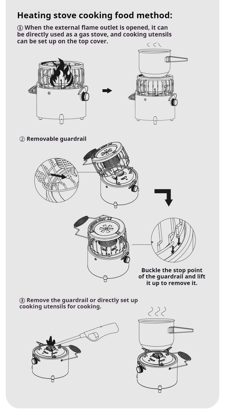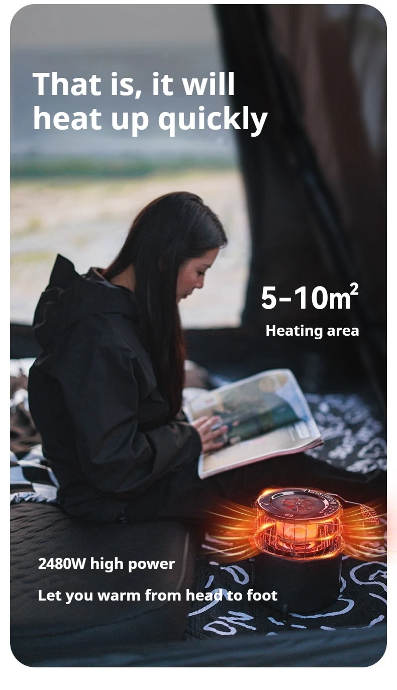Punto di vendita del prodotto: fino a 2480 W, riscaldamento rapido/maniglia flessibile facile da trasportare antiscottatura/una varietà di modalità di utilizzo/regolazione libera della dimensione della fiamma/tappo antiscottatura/testa della stufa in acciaio inossidabile