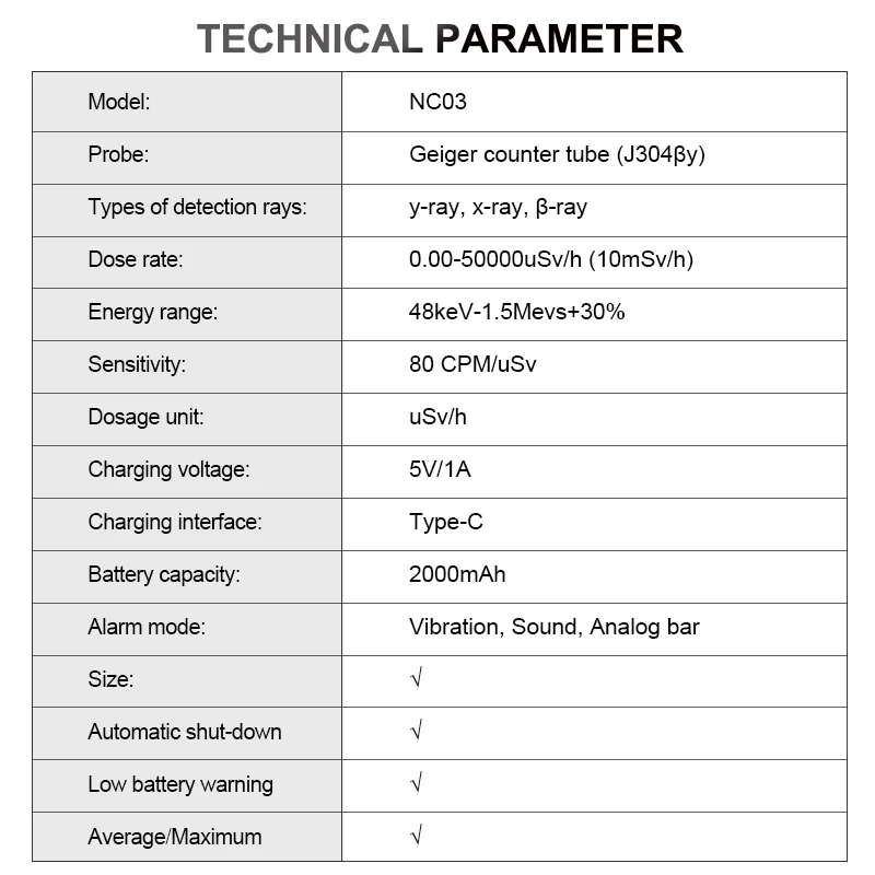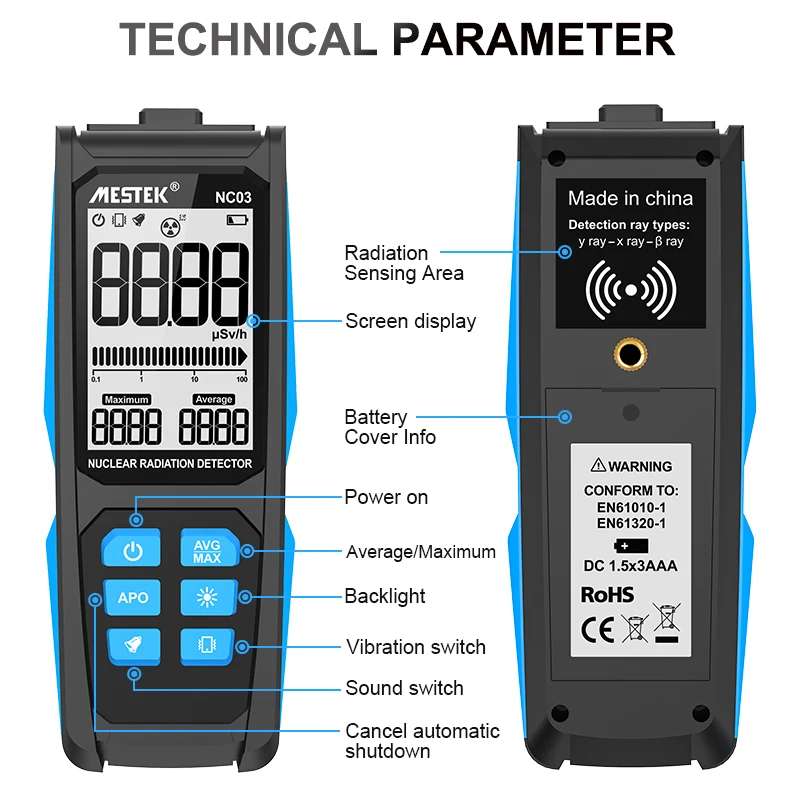 NC03 rilevatore di radiazioni nucleari GM Geiger Counter Tester radiologico da laboratorio dosimetro digitale ricaricabile portatile