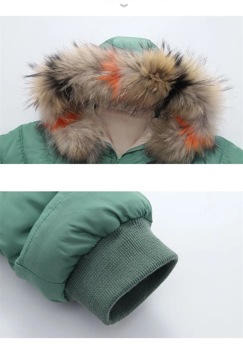 Neonata Ragazzo Tuta Sportiva Calda 2023 Inverno Nuovi Bambini Piumino Grande Collo di Pelliccia Cappotto Abbigliamento Per Bambini Solido Addensare Ragazza Ragazzo Giacca