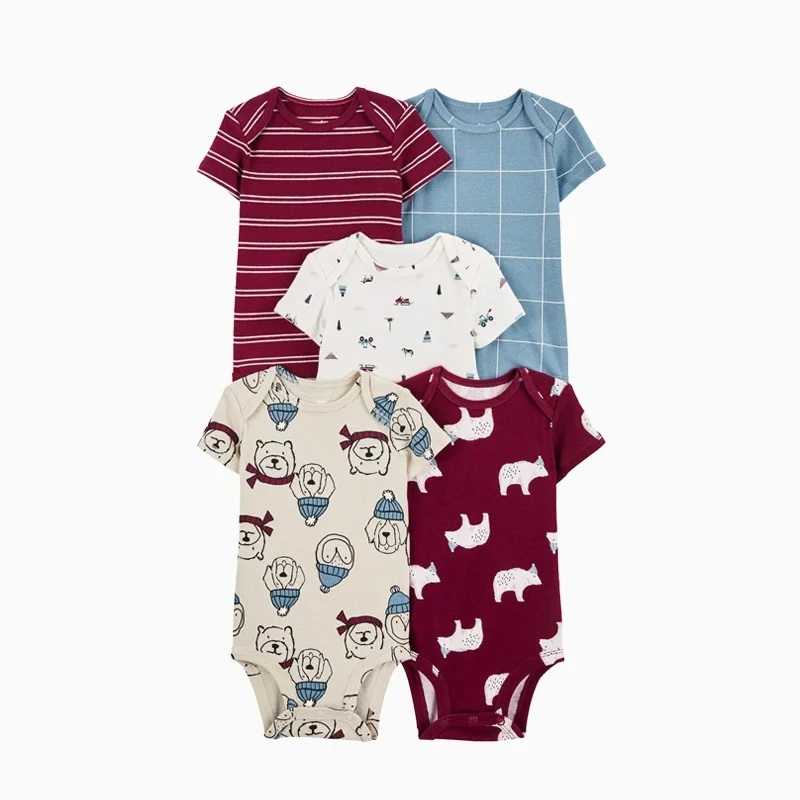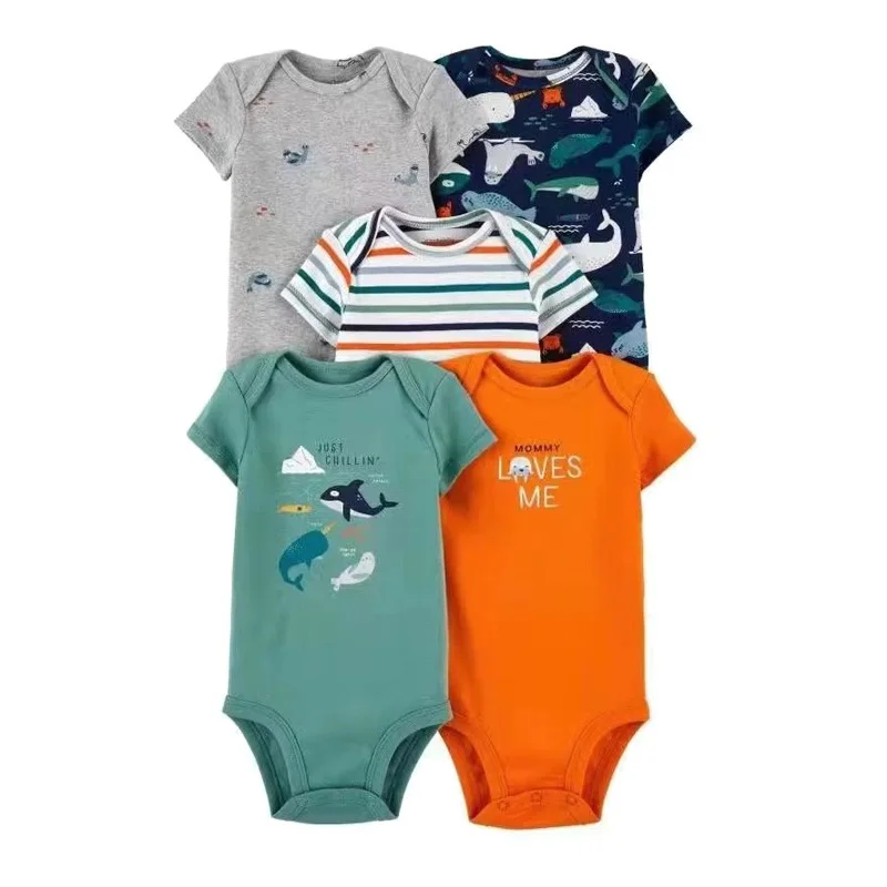 Neonato ragazza ragazzo vestiti estate manica corta 100% cotone pagliaccetto bambino bambini tuta tuta per bambini 5 pz/lotto 1Neonato ragazza ragazzo vestiti estate manica corta 100% cotone pagliaccetto bambino bambini tuta tuta per bambini 5 pz/lotto
