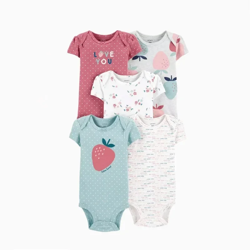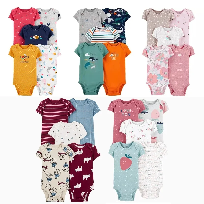 Neonato ragazza ragazzo vestiti estate manica corta 100% cotone pagliaccetto bambino bambini tuta tuta per bambini 5 pz/lotto