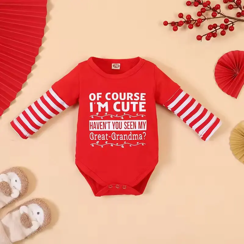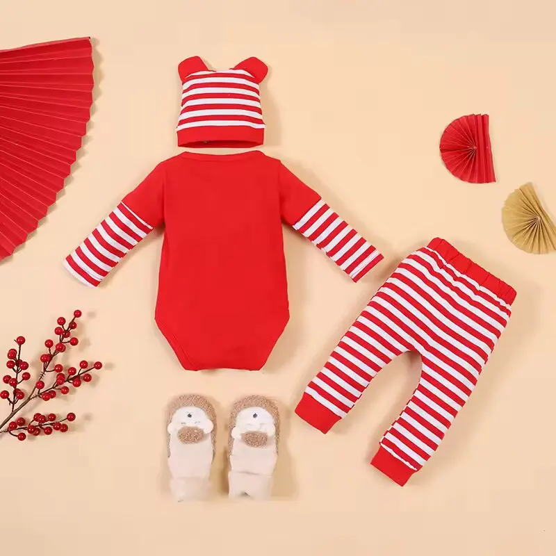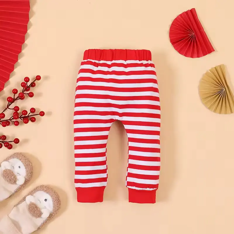 Neonato Ragazzo Ragazza Primavera Autunno Abbigliamento Set Tuta a maniche lunghe Rosso Bianco Pantaloni a righe Abito natalizio Vestiti per bambini