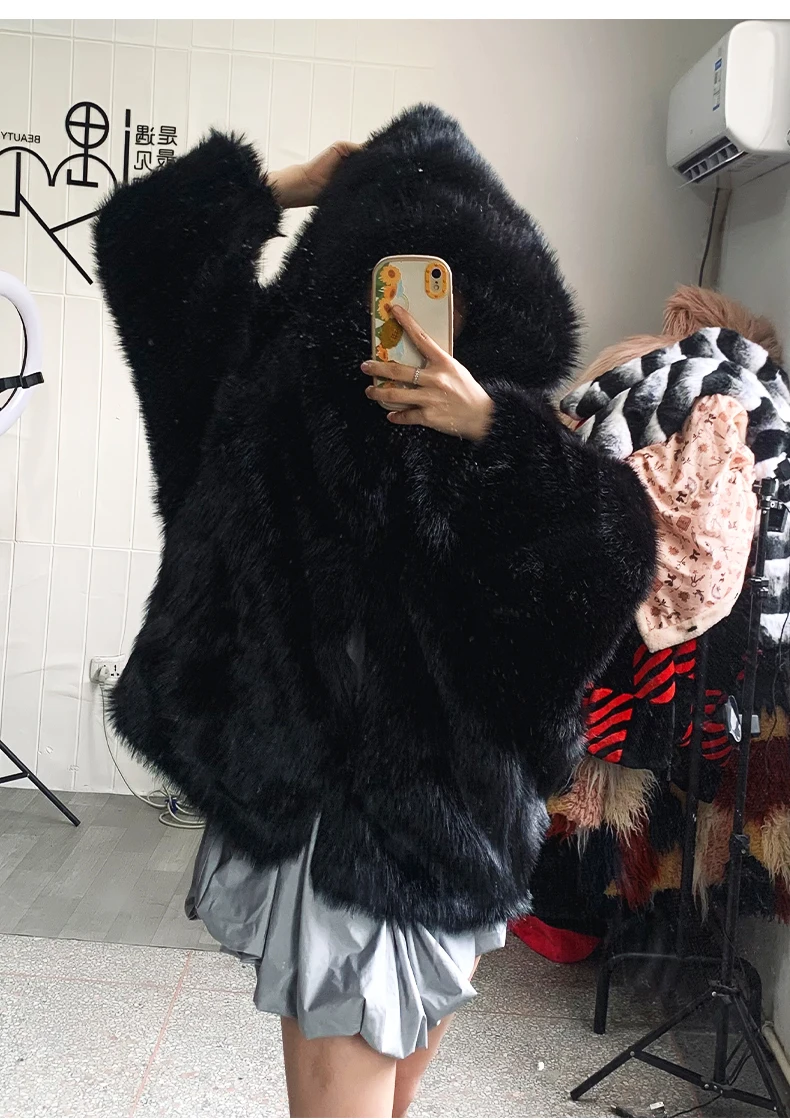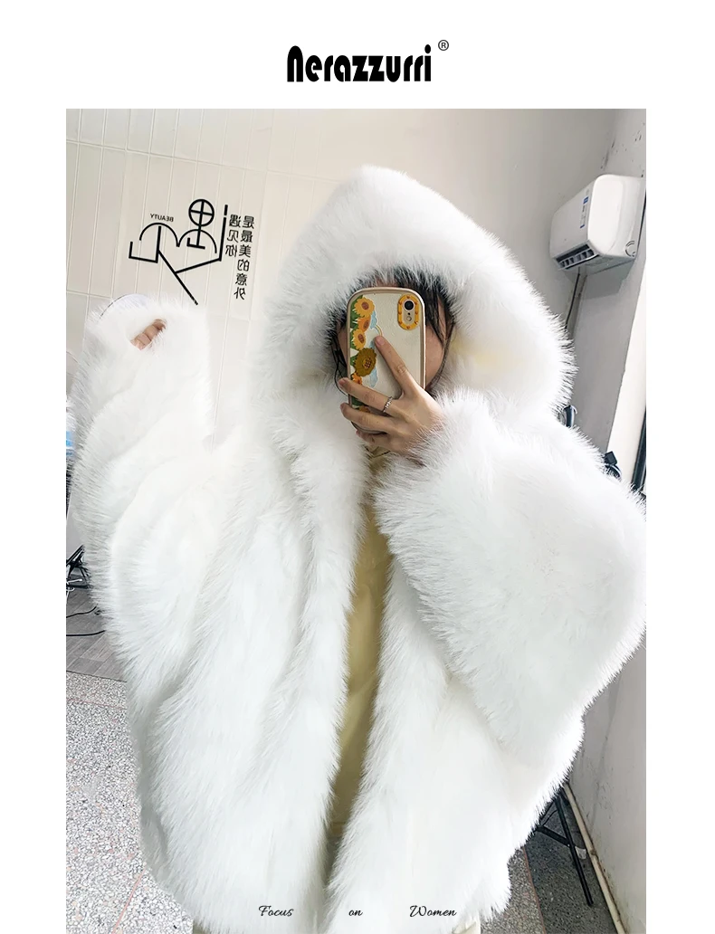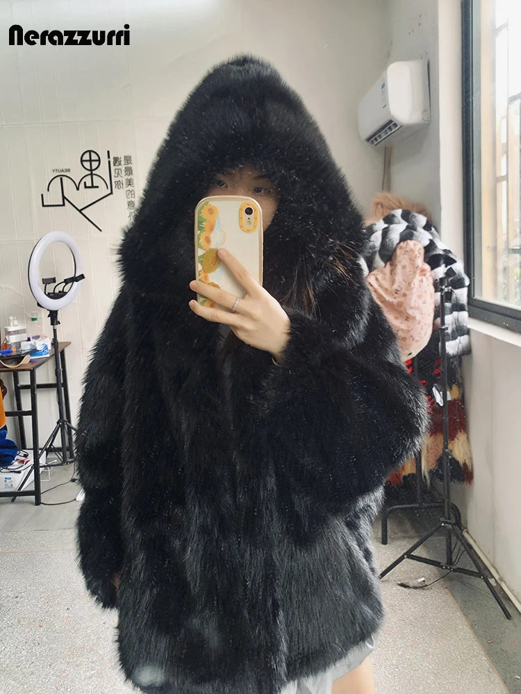 Nerazzurri autunno inverno oversize bianco nero caldo Shaggy peloso pelliccia sintetica cappotto donna con cappuccio sciolto Casual soffice giacca 2023 1Nerazzurri autunno inverno oversize bianco nero caldo Shaggy peloso pelliccia sintetica cappotto donna con cappuccio sciolto Casual soffice giacca 2023