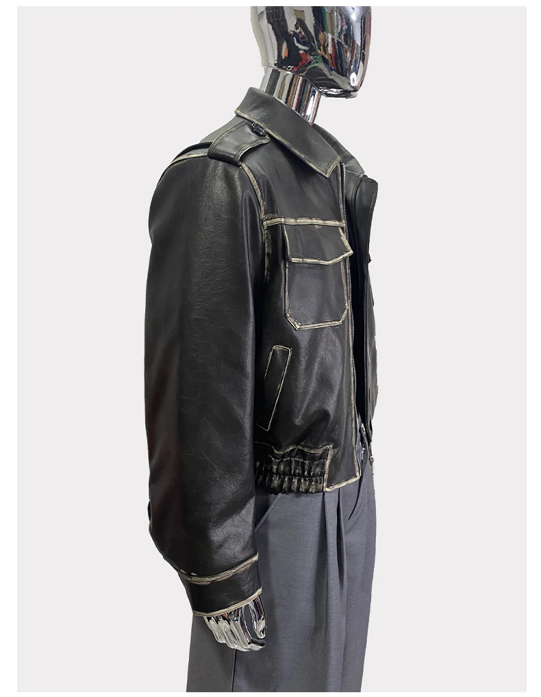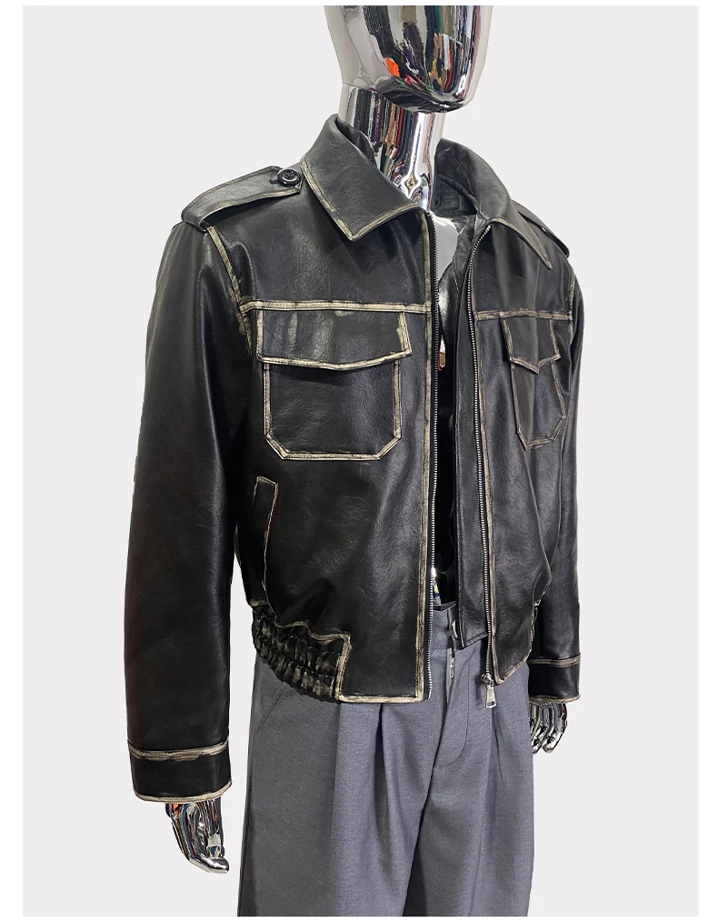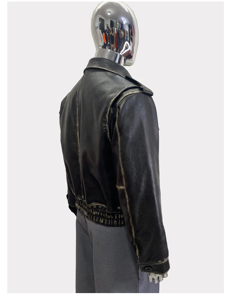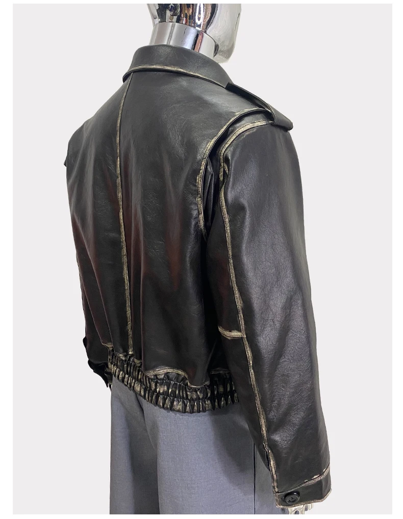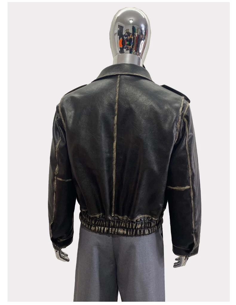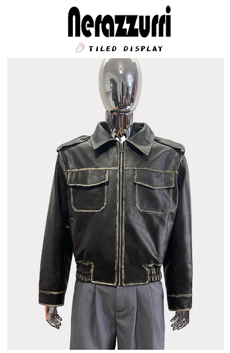 Nerazzurri primavera autunno Cool Vintage Distressed Pu Leather Jacket Men Zipper Luxury Designer American Retro Clothes 2024
