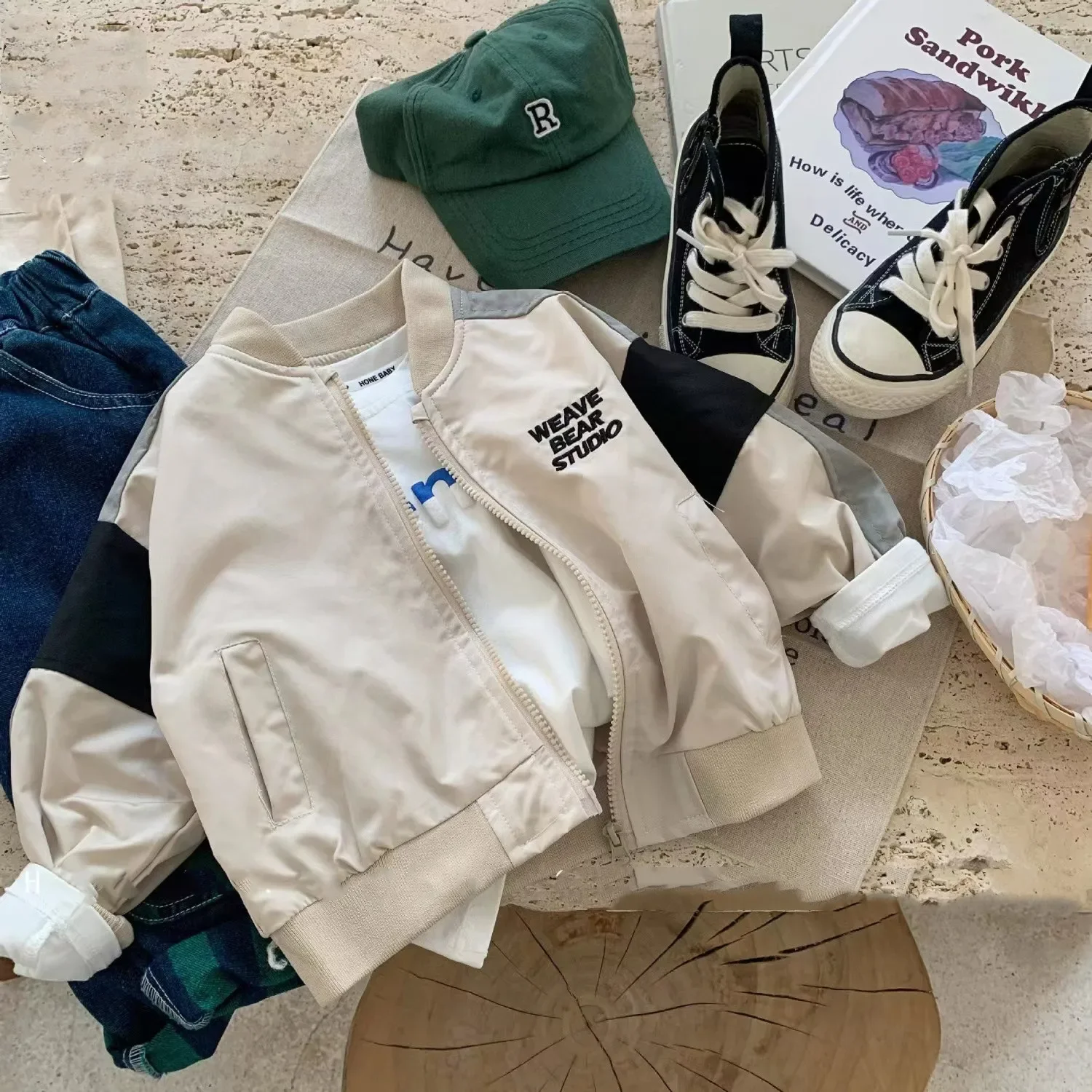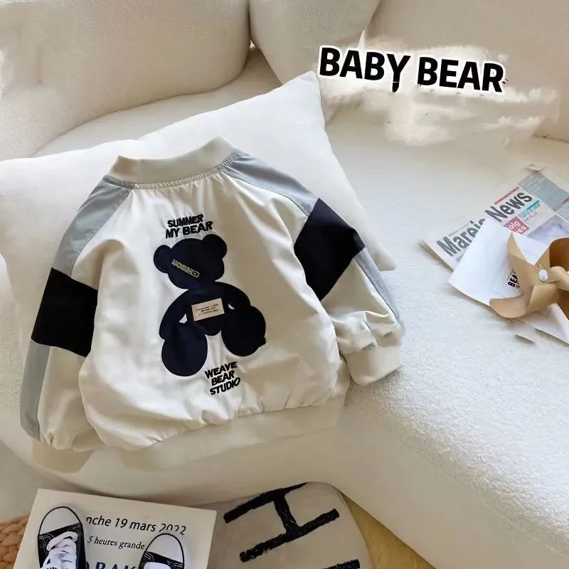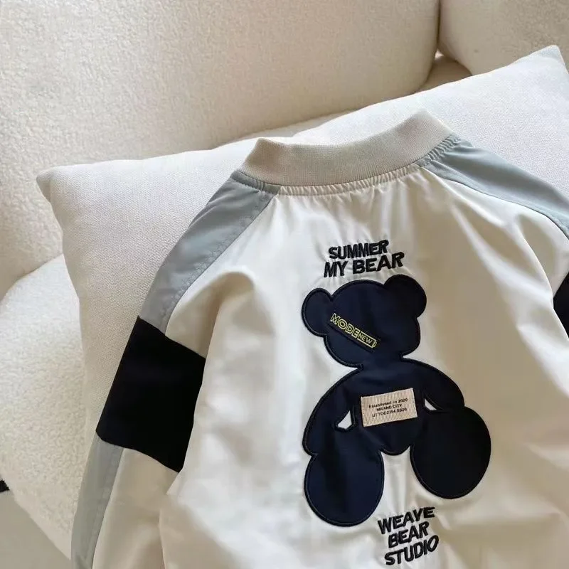 New Boys Coat Casual Bear Color Blocking Jacket primavera e autunno 2023 uniforme da Baseball cinese per bambini moda coreana per bambini