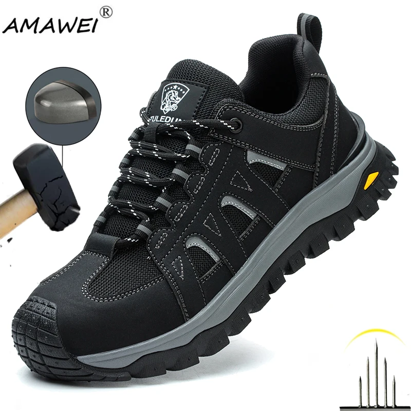 New Fashion Uomo Scarpe antinfortunistiche Scarpe da lavoro Puntale in acciaio Sneakers Uomo Scarpe traspiranti Scarpe da costruzione antiscivolo e resistenti all’olio