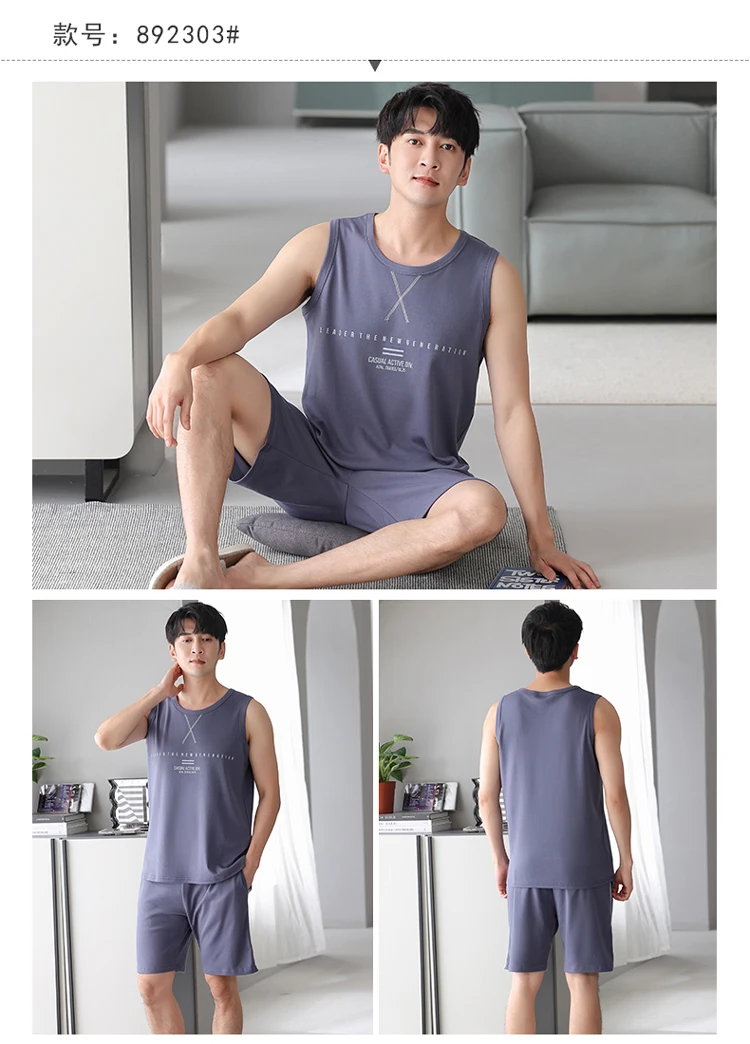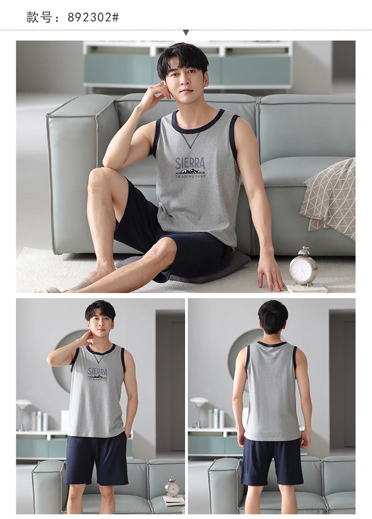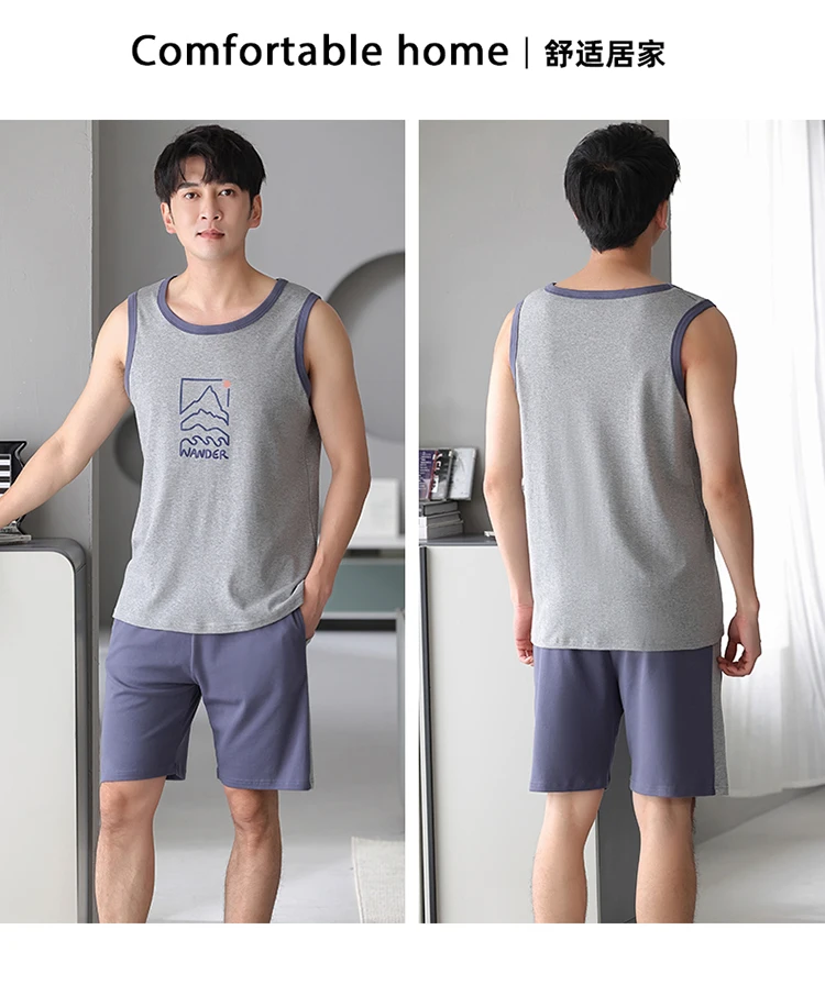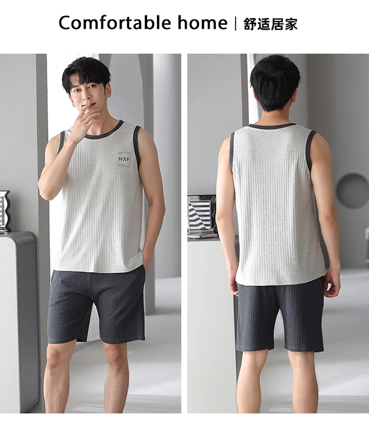 New Knited Cotton Men pigiama Set Summer Sleepwear senza maniche Big Size M-4XL abiti per il tempo libero pigiami da notte da uomo
