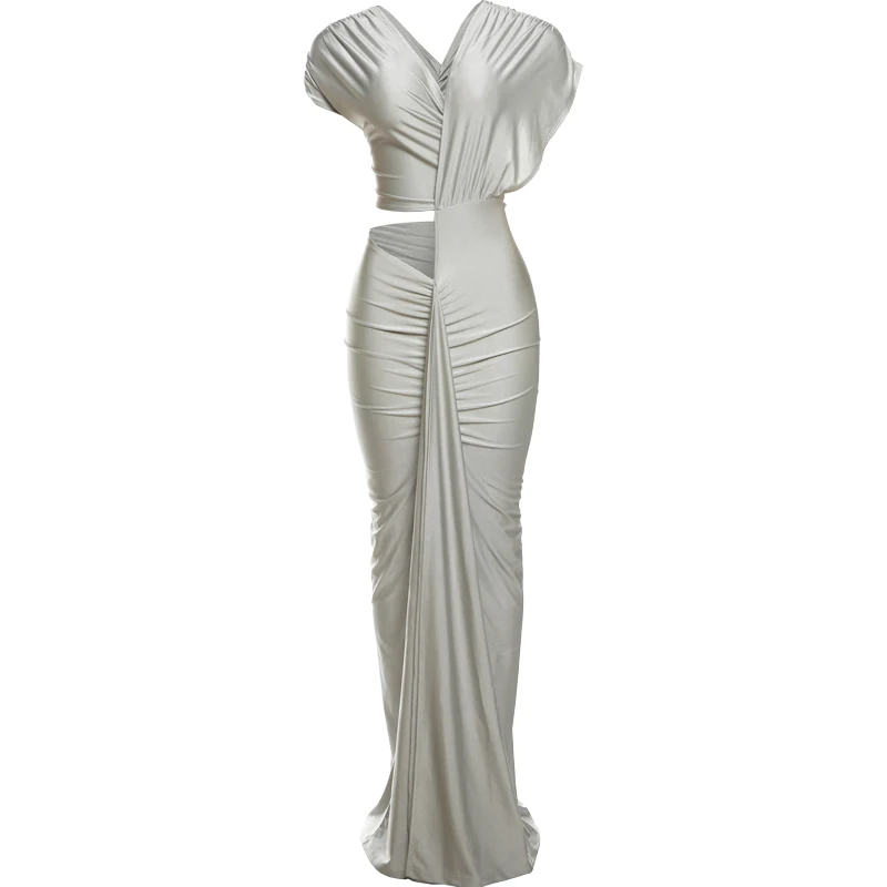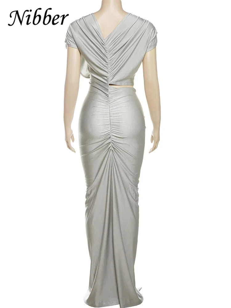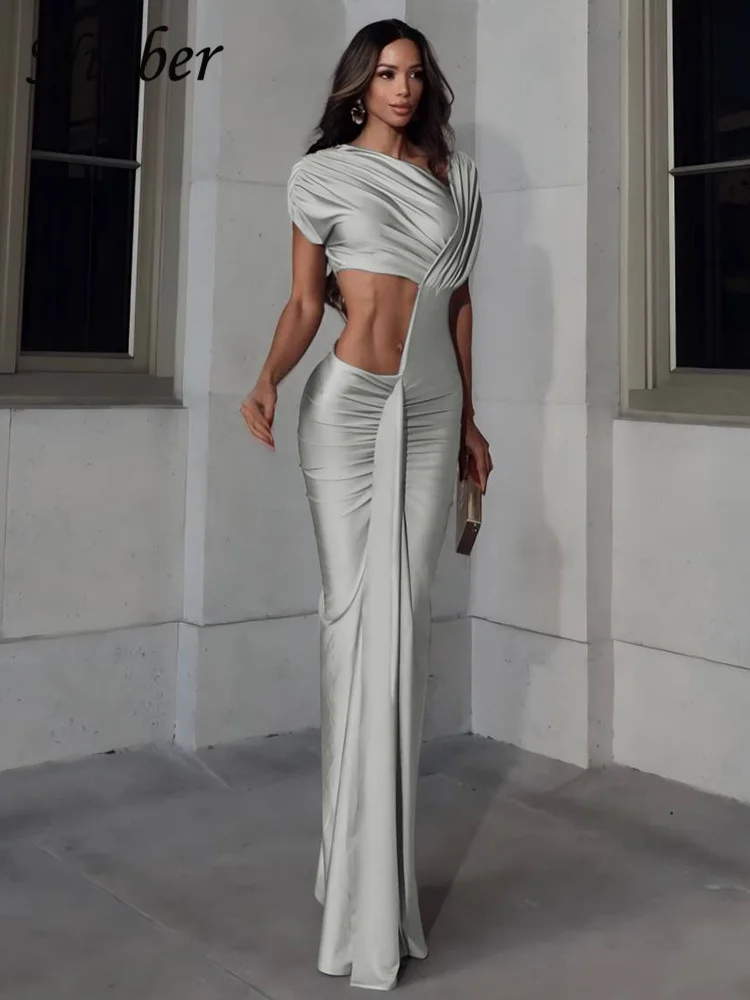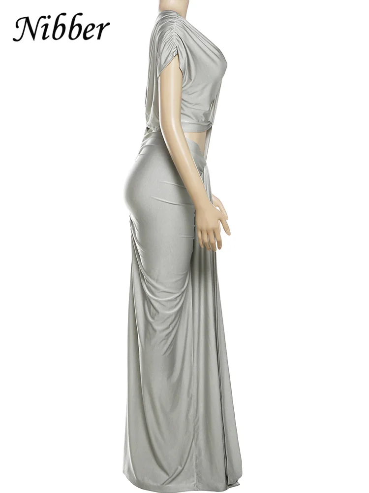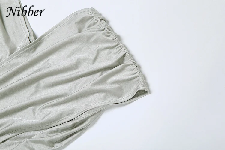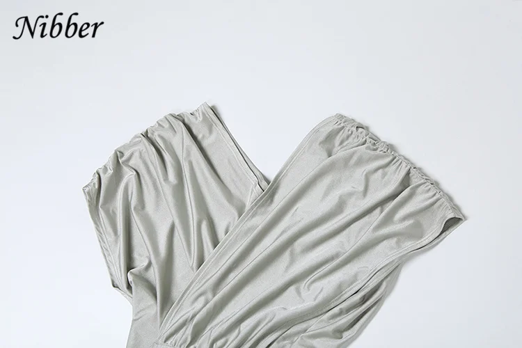 Nibber Abito cavo irregolare Donna Colletto diagonale increspato Pantaloncini Manica Spacchi senza vita Tendenza di strada Temperamento Lungo aderente