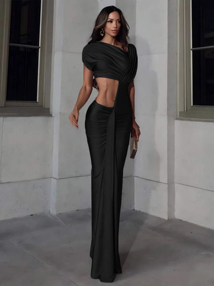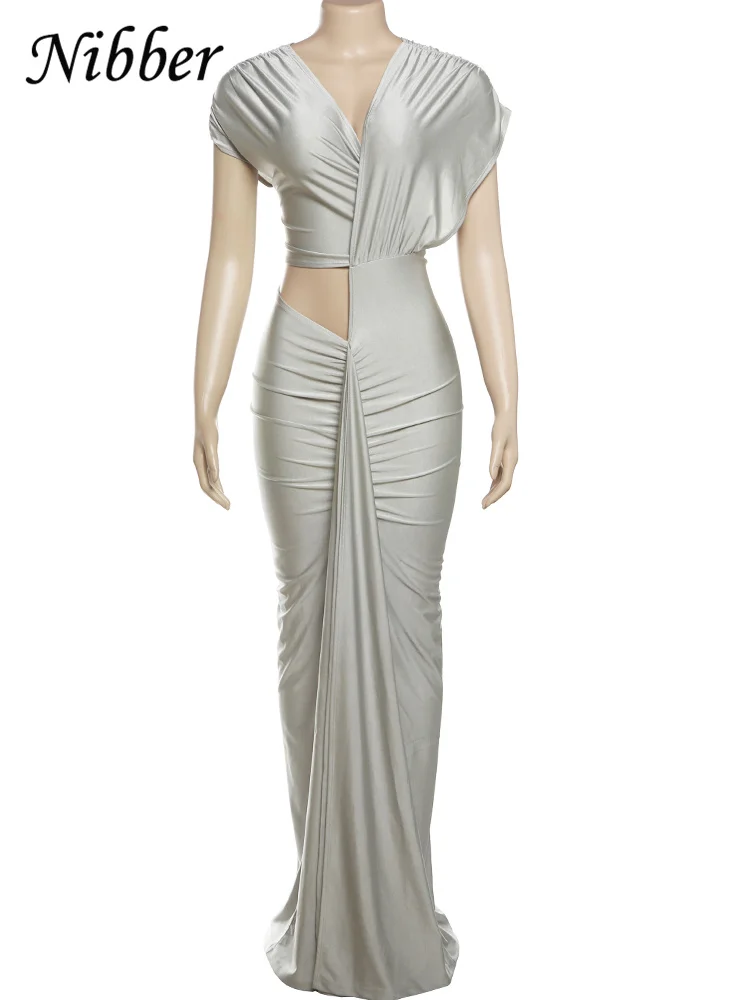 Nibber Abito cavo irregolare Donna Colletto diagonale increspato Pantaloncini Manica Spacchi senza vita Tendenza di strada Temperamento Lungo aderente