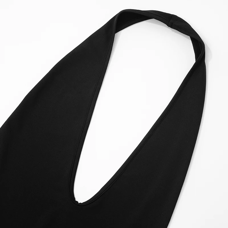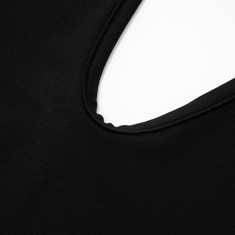 Nibber Abito sexy senza schienale con scollo all’americana Donna senza maniche Collo basso Stretch Estate Basic Skinny Midnight Solid Clubwear Mini aderente