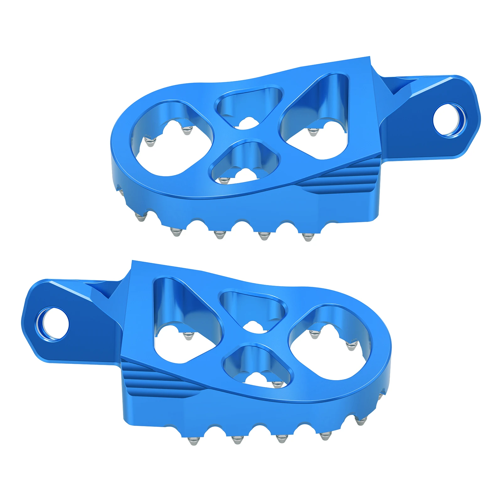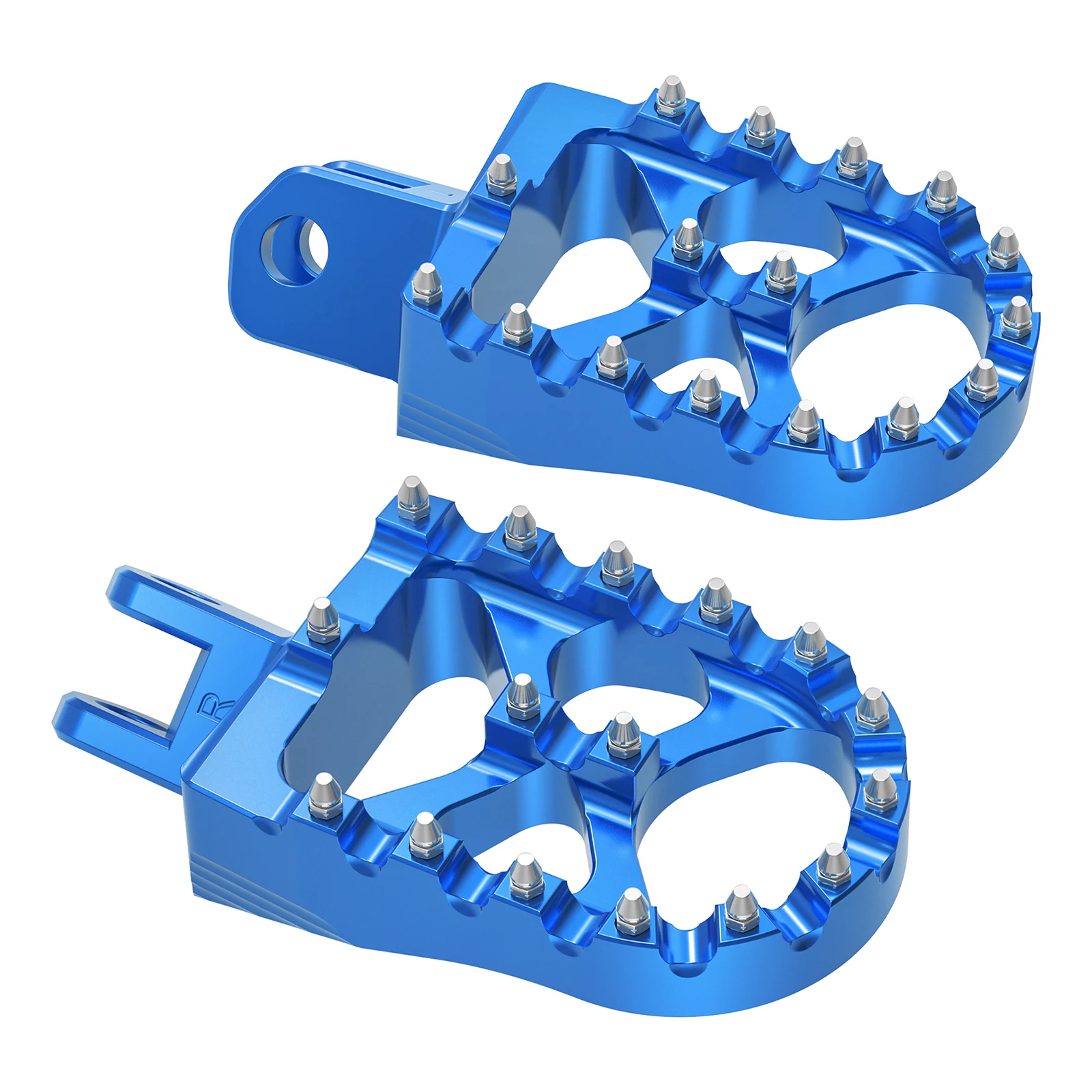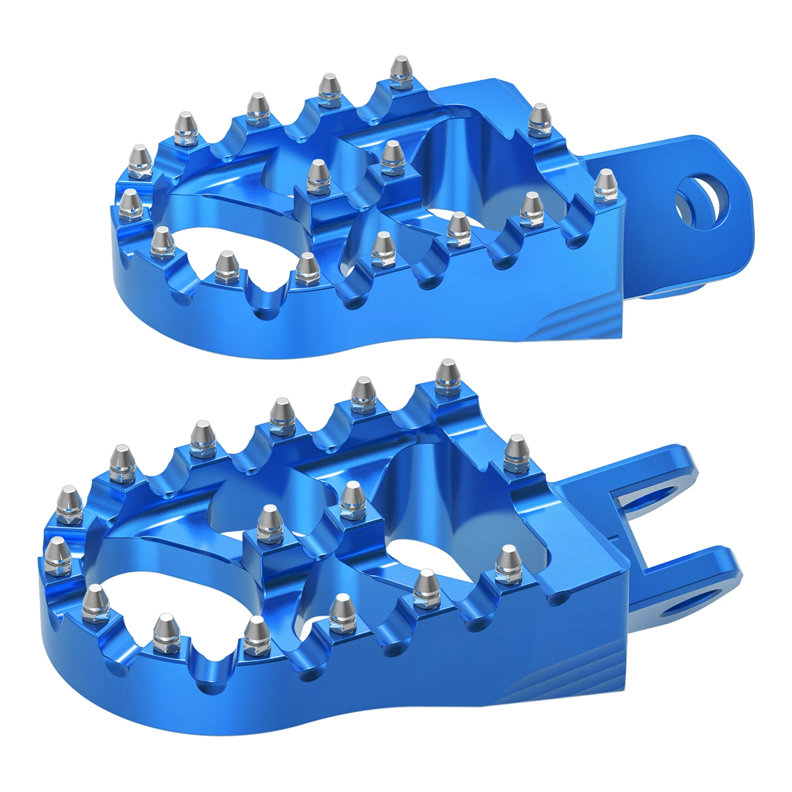 — CNC-machined from billet aluminum– Anodized surface finishing parts give your bike an eye-catching look– Upgraded 57mm wide platform allows a better accessibility and stability– Stainless steel sharp teeth provide rider with ultimate grip and better anti slip control– 5 extra detachable & wear-resistant stainless steel sharp teeth for your replacement– Easy to install, mount with your OEM springs and pinsItem Specifics:– Condition: 100% Brand New– Material: Aluminum– Processing: CNC-Machined– Color: Black, Gold, BluePackage Included:1x Pair Foot PegsFitment:For Suzuki DRZ400S/SM 2000-2024
