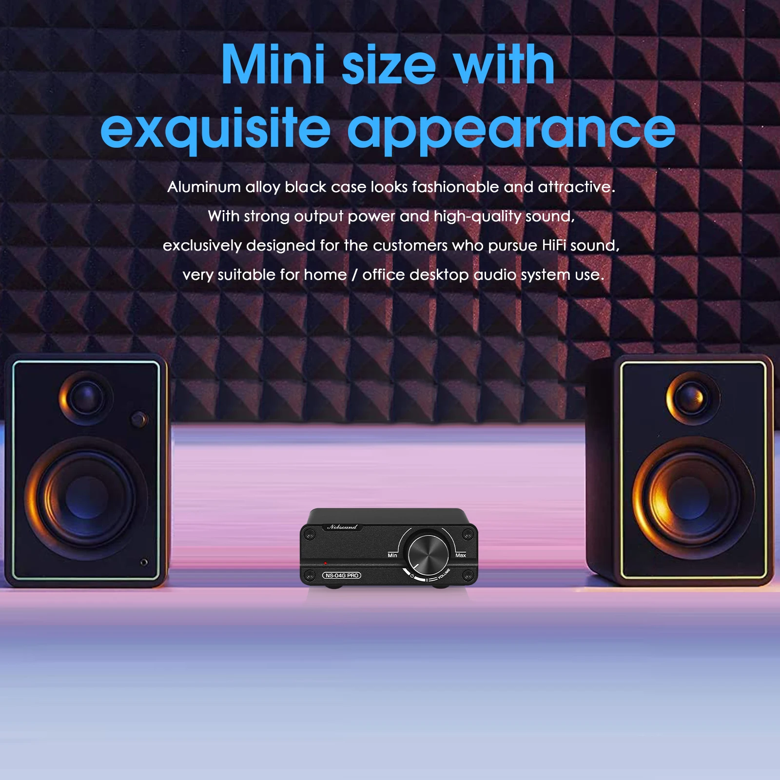 Mini dimensioni con un aspetto squisito, la custodia nera in lega di alluminio sembra alla moda e attraente. Con una forte potenza di uscita e un suono di alta qualità, progettato esclusivamente per i clienti che seguono il suono HiFi, molto adatto per l’uso del sistema audio desktop di casa/ufficio.