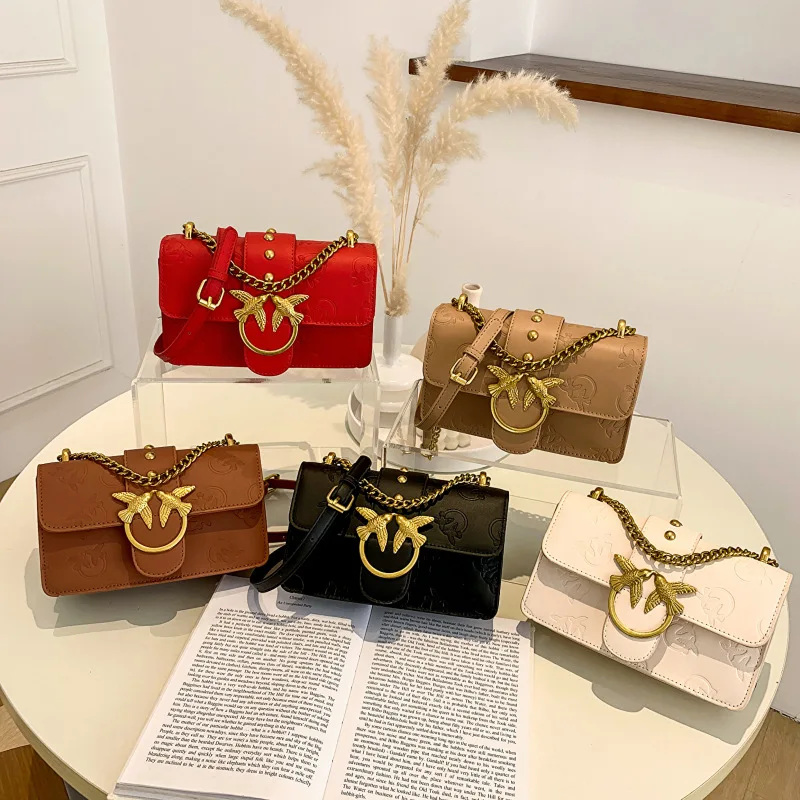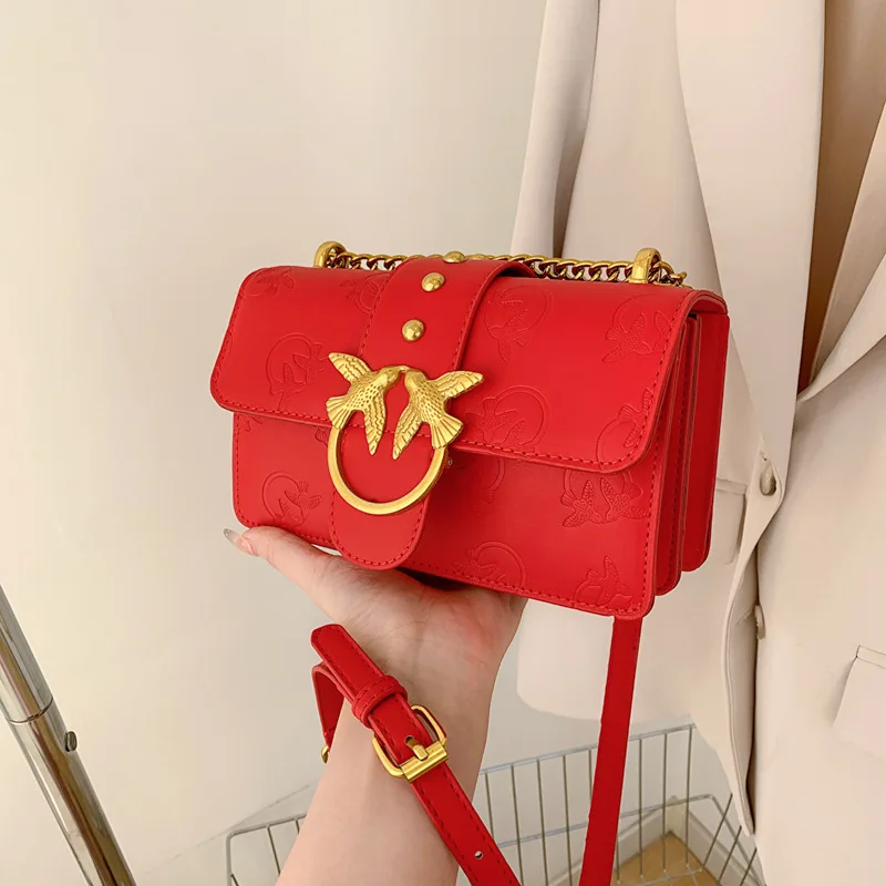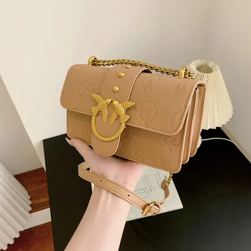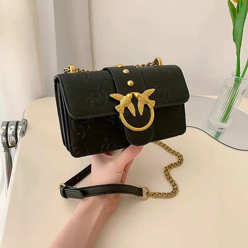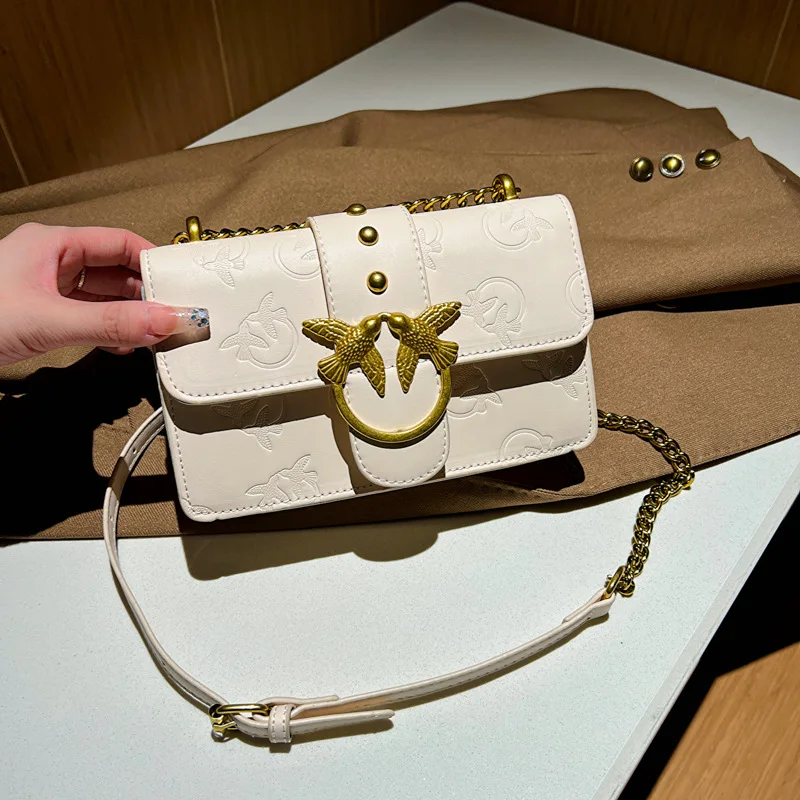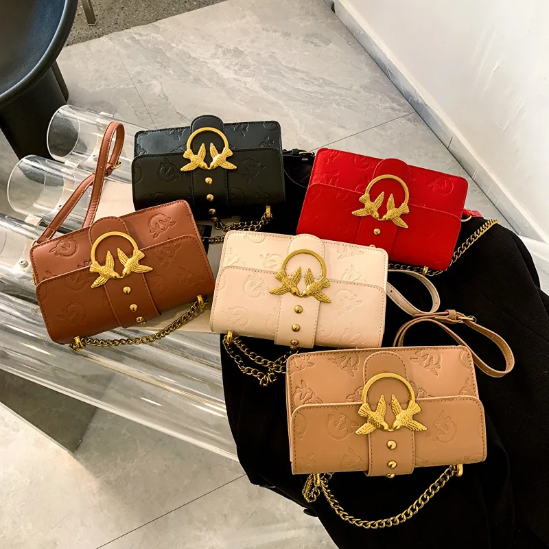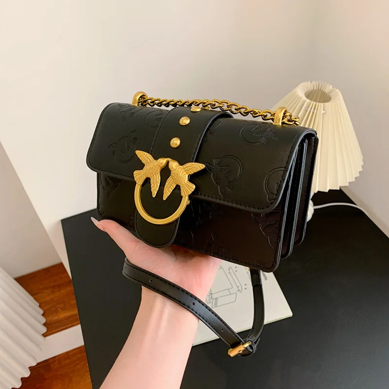 Nuova borsa da donna con rondine quadrata piccola in rilievo – Sotto le ascelle monospalla con catena in metallo alla moda