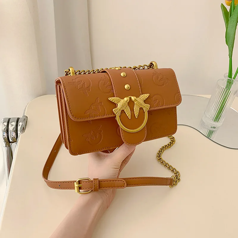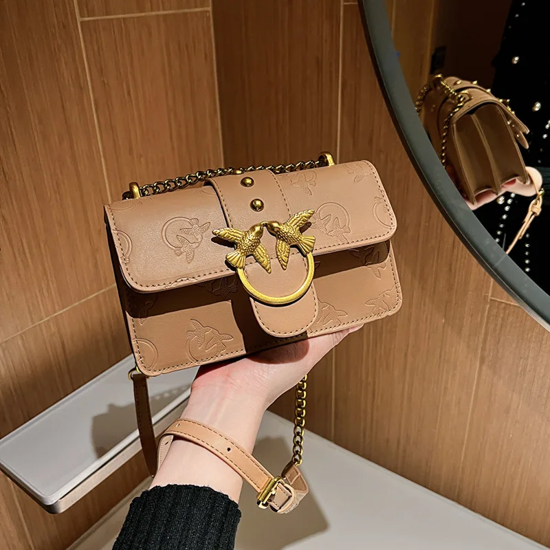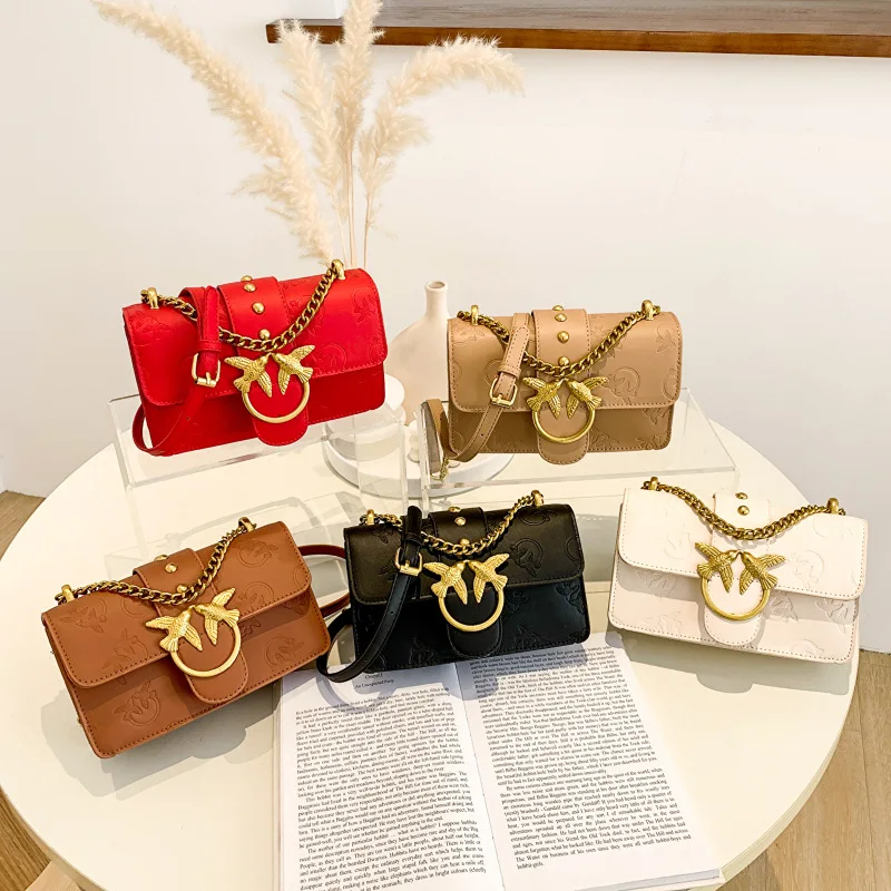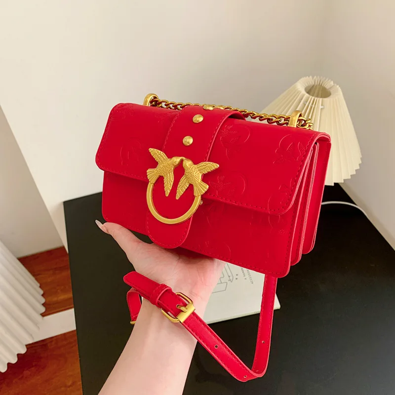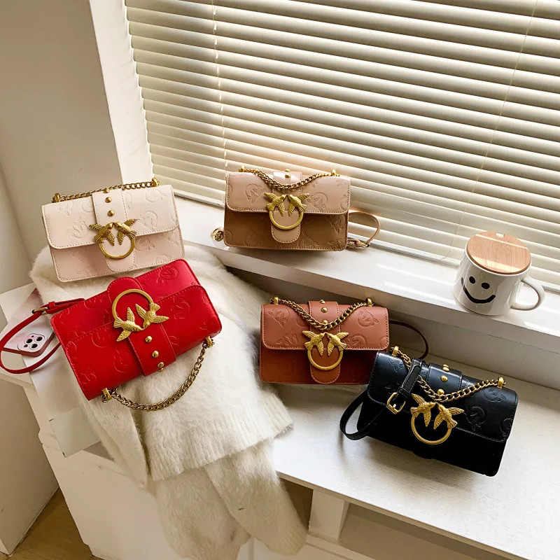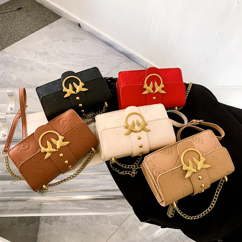 Nuova borsa da donna con rondine quadrata piccola in rilievo – Sotto le ascelle monospalla con catena in metallo alla moda