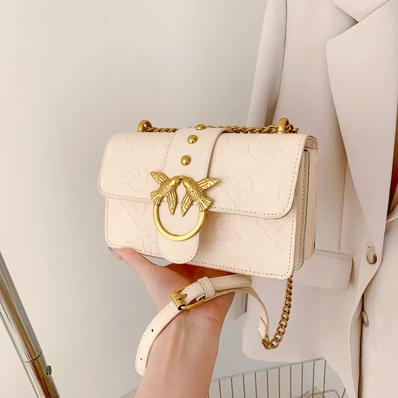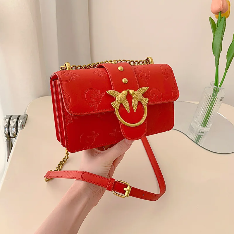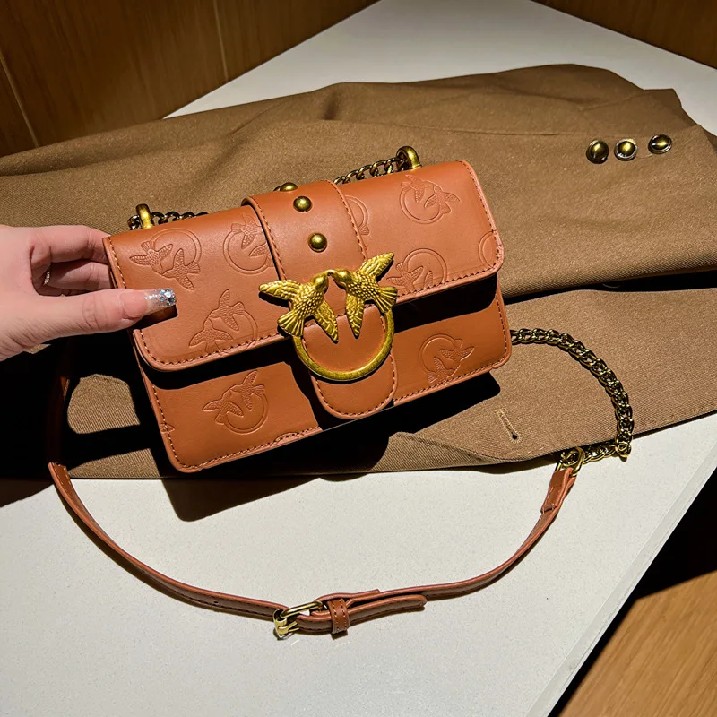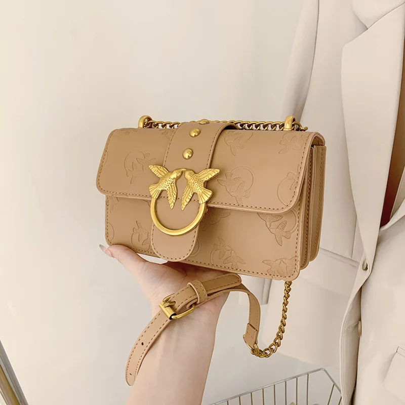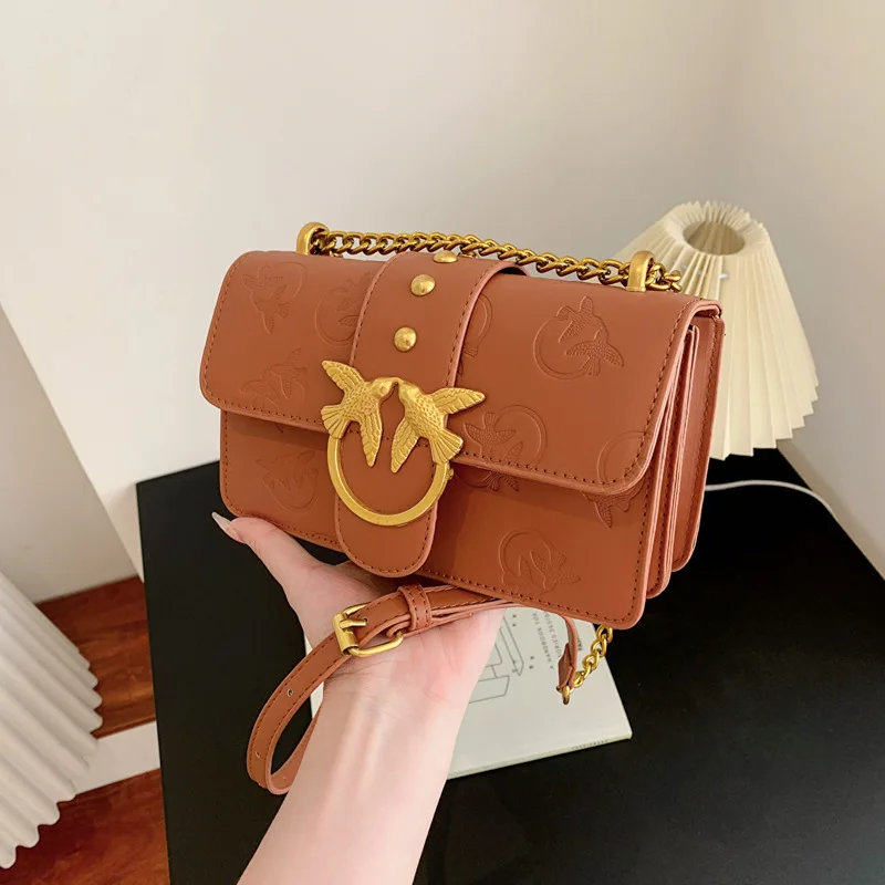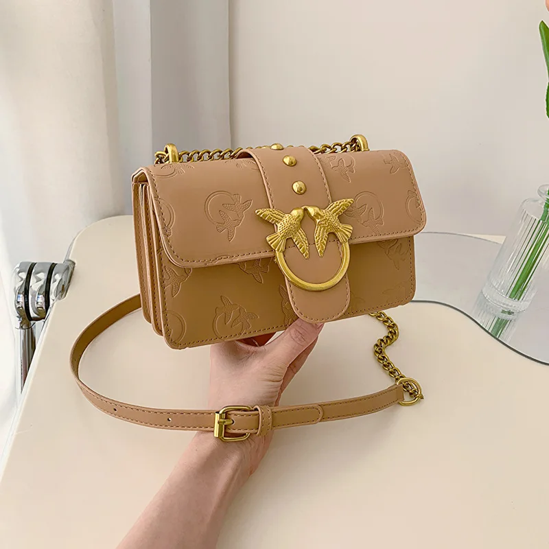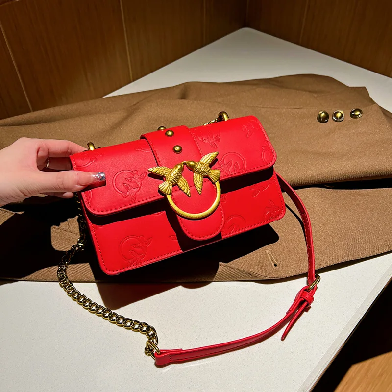 Nuova borsa da donna con rondine quadrata piccola in rilievo – Sotto le ascelle monospalla con catena in metallo alla moda