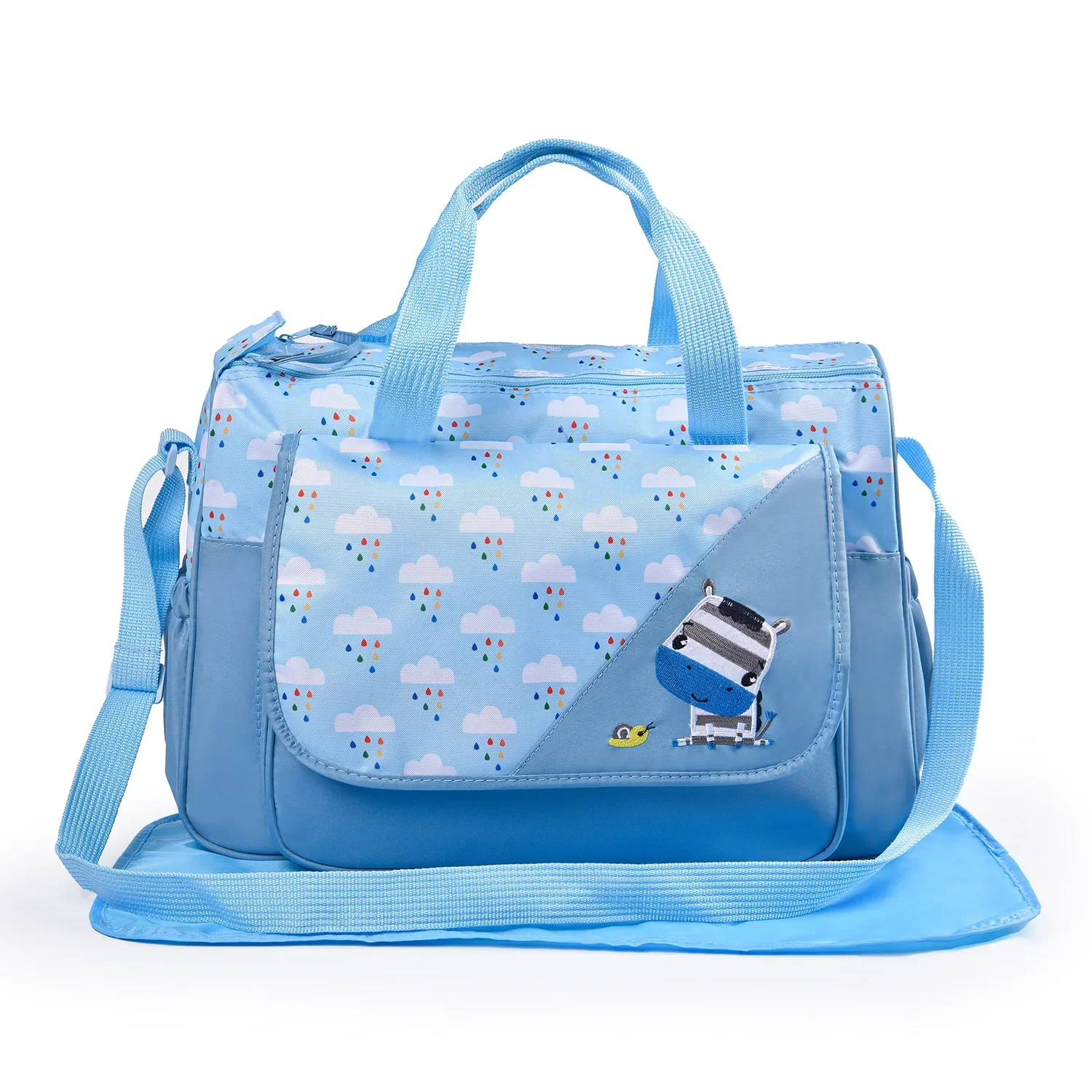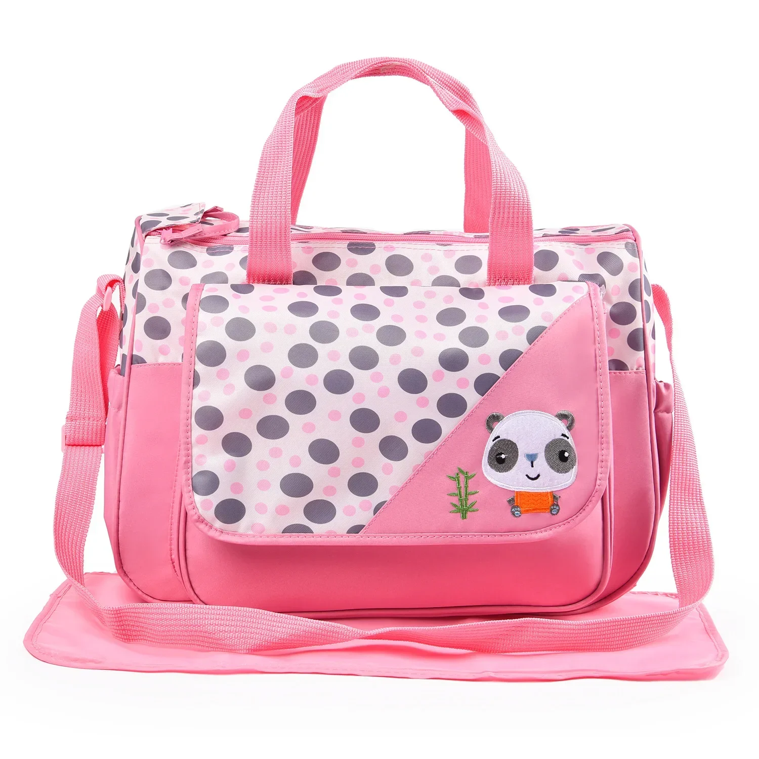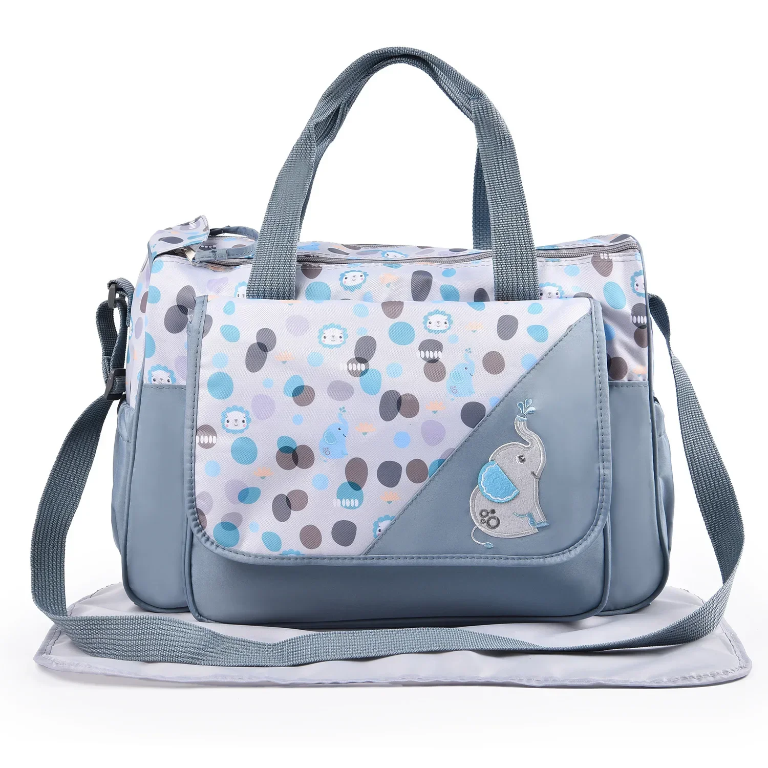 Nuovo set di cinque pezzi per borsa per mummia Dimensioni del prodotto: Borsa grande: 43 x 30,5 x 16 cm Borsa piccola: 32 x 25,5 x 12 cm Borsa per bottiglia: 19 x 8 x 8 cm Borsa per pranzo: 12,5 x 11,5 cm Cuscinetti per urina che cambiano: 53 x 29,5 cm Peso del set da cinque pezzi: 950 g