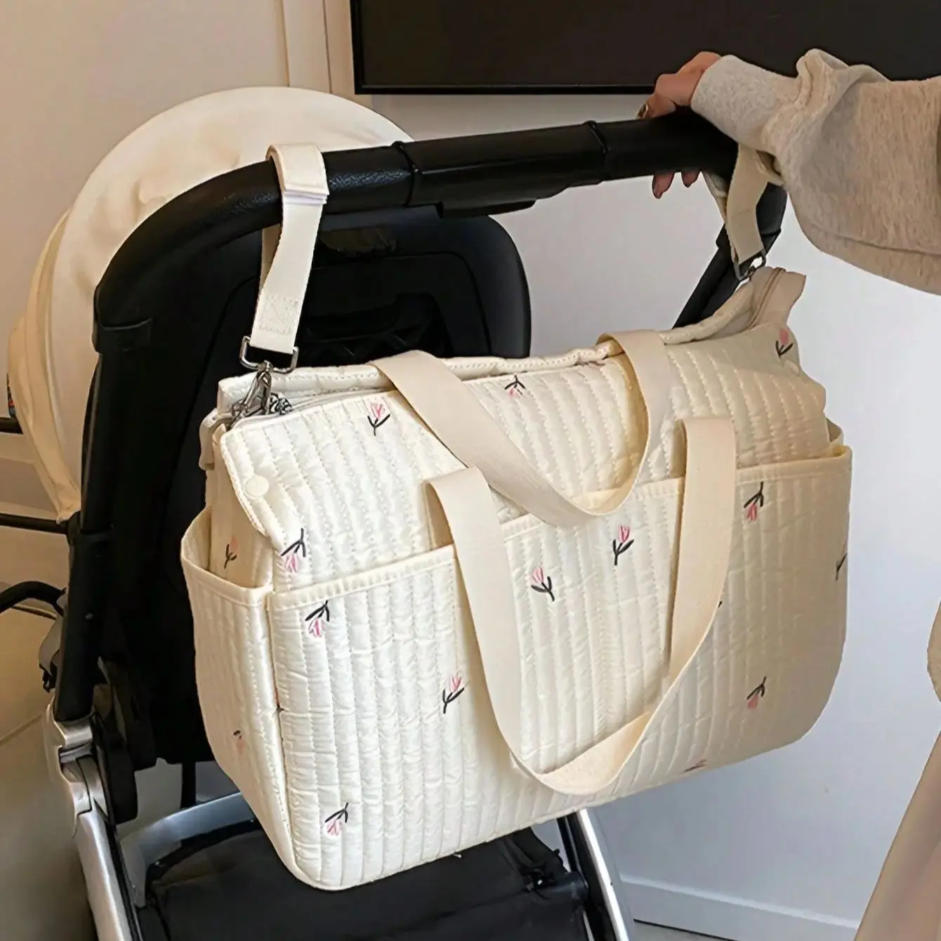 Nuova borsa per mummia ad alta capacità Borsa per mamma e bambino con orso ricamato Borsa per passeggino portatile per pannolini per biberon