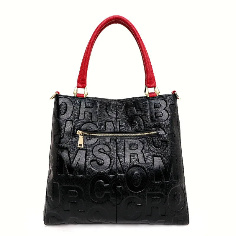 Nuova borsa tote in pelle di vacchetta da donna Borsa a tracolla portatile stampata con lettera di grande capacità alla moda e versatile