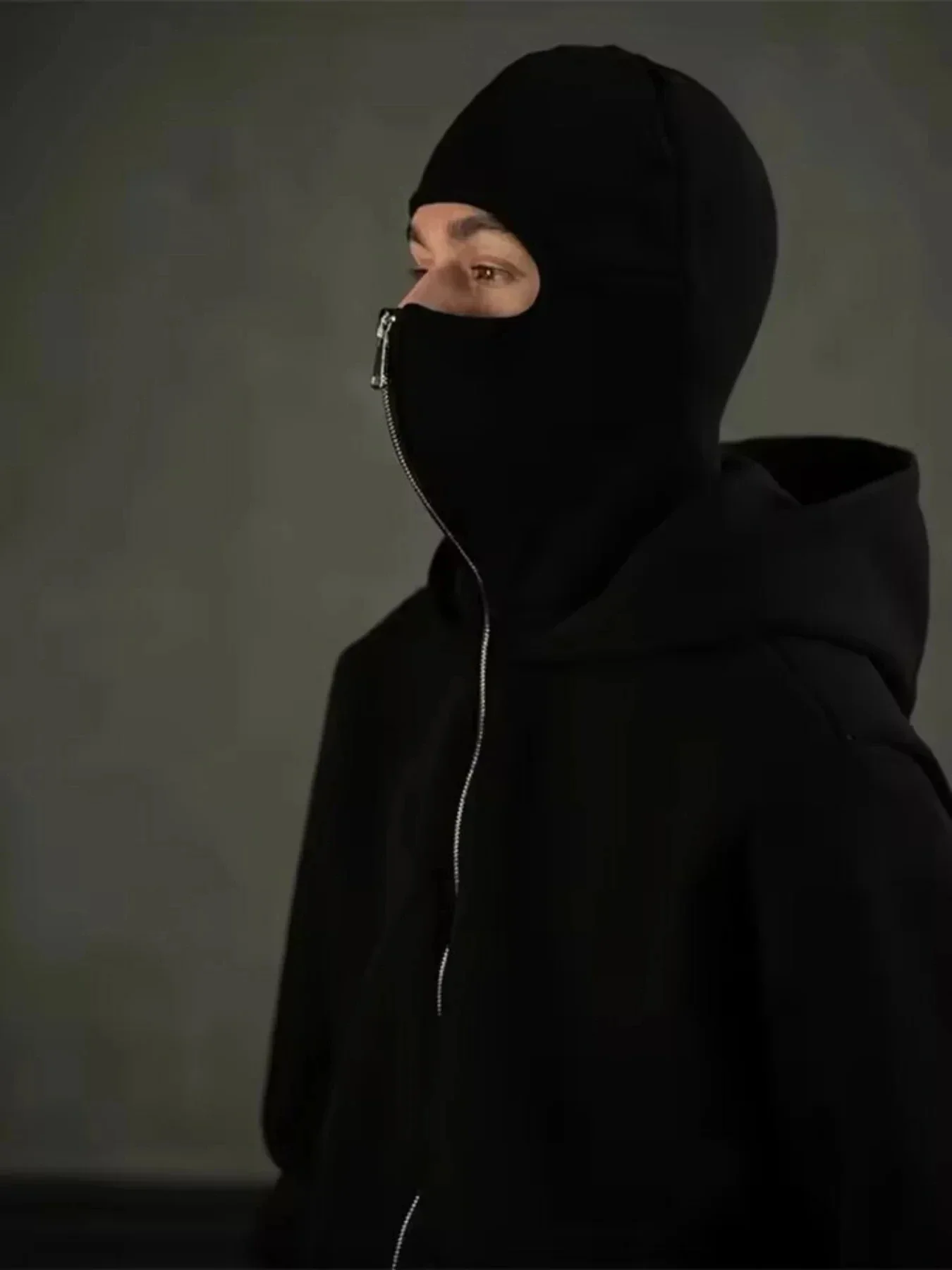 Nuova felpa con cappuccio balaclava retrò Y2k hip hop per uomini e donne, felpa ninja 4f, felpa con cerniera per coppie autunno/inverno Conforta