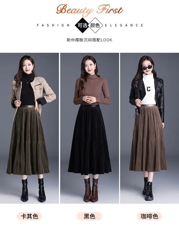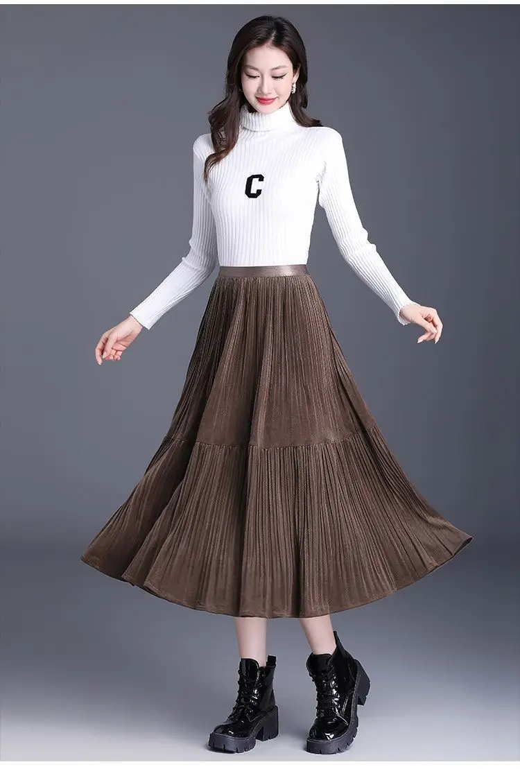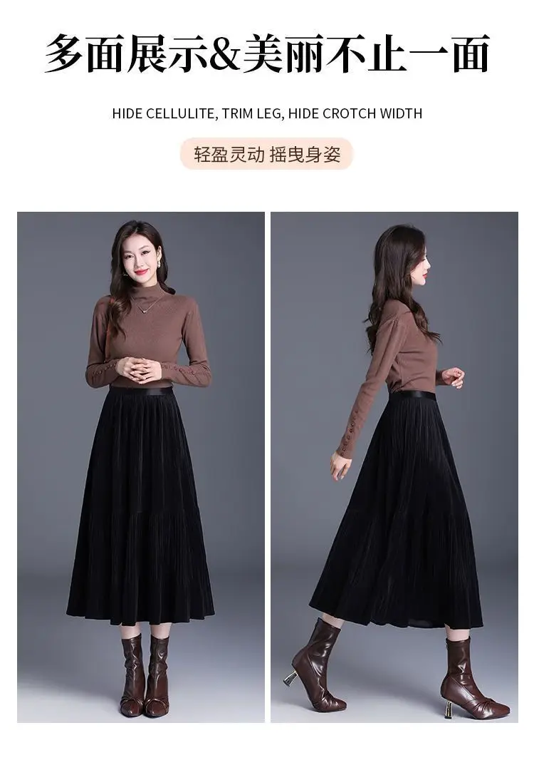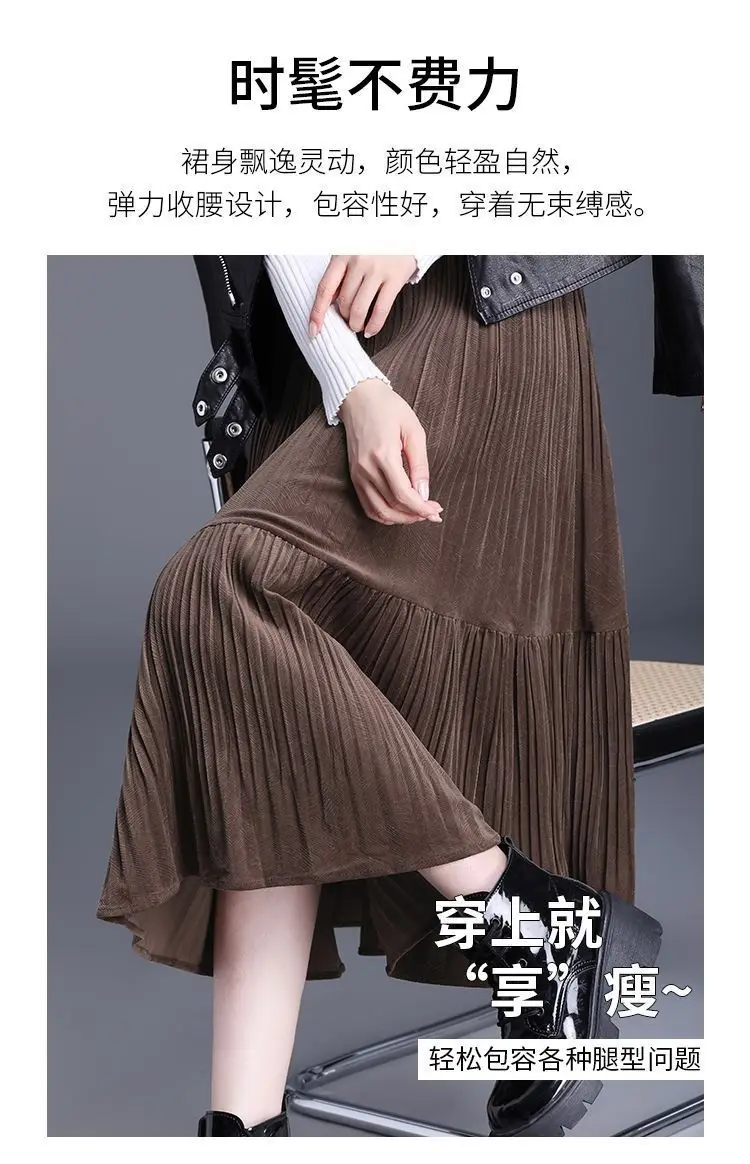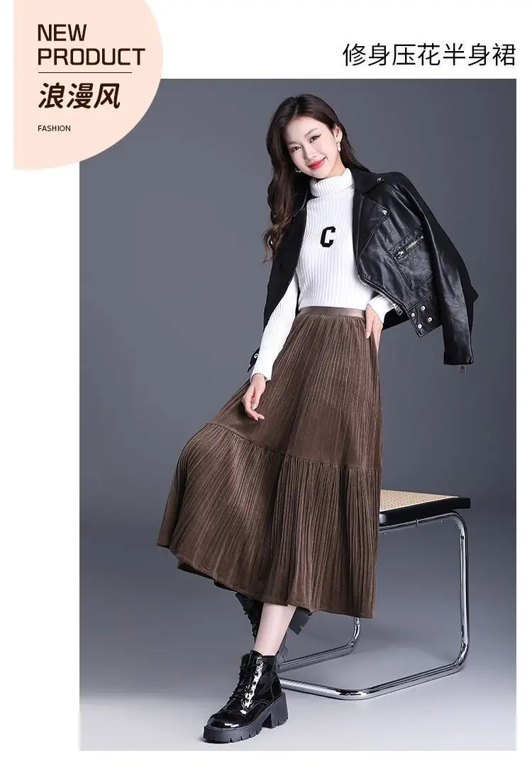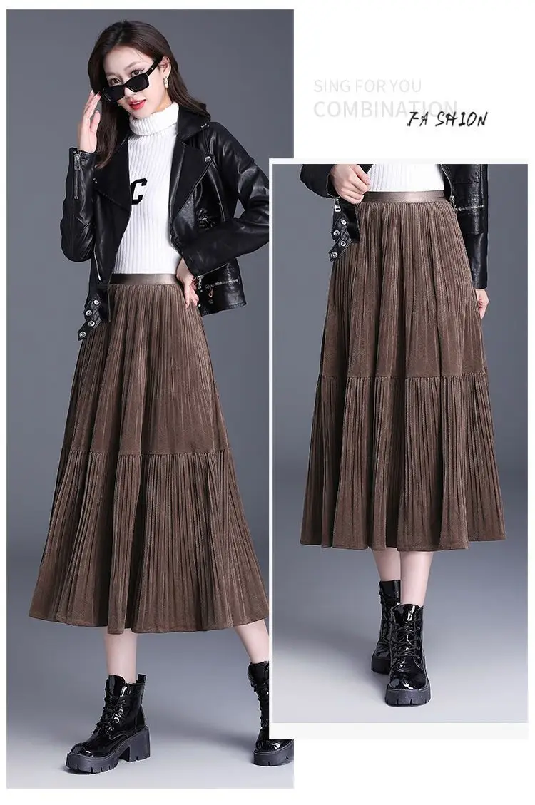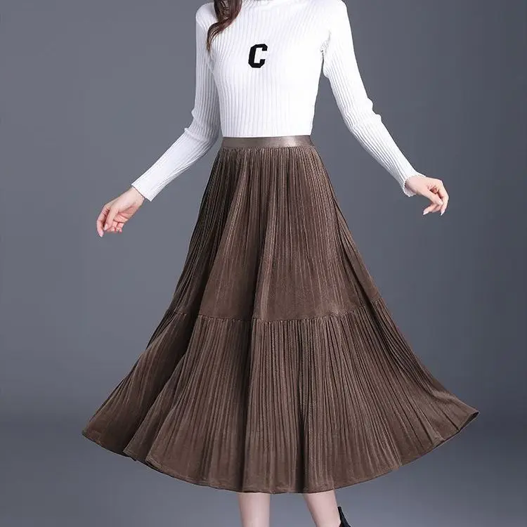 Nuova gonna a pieghe in velluto dorato autunno e inverno Gonna slim elastica e alla moda a vita alta di media lunghezza