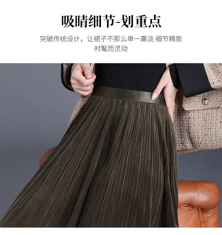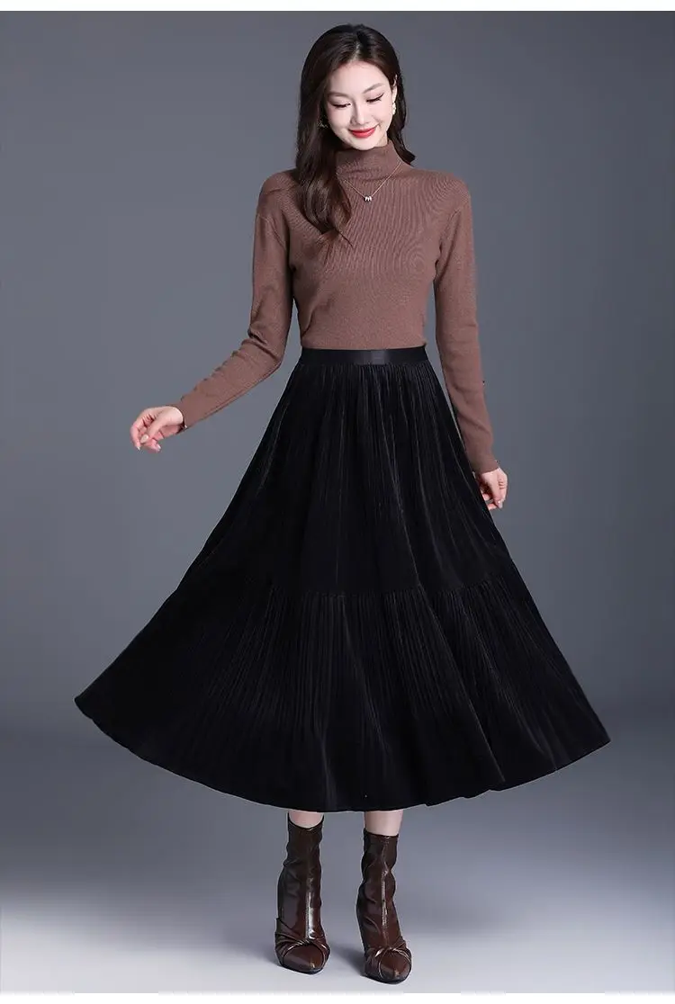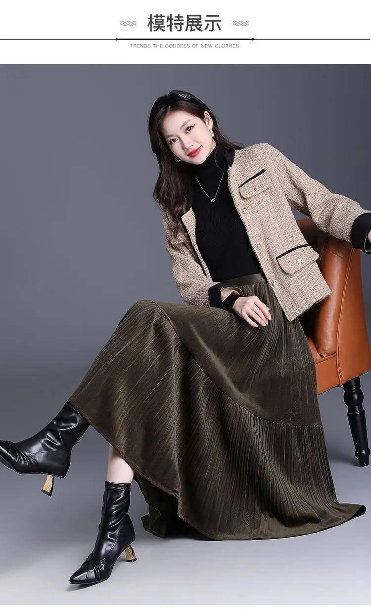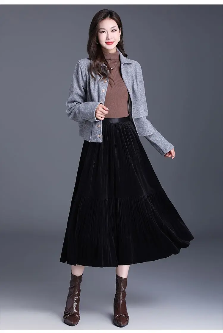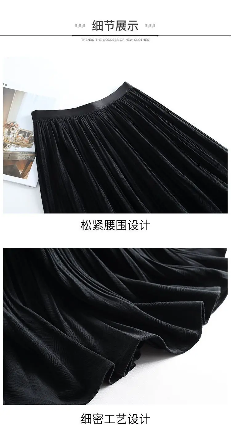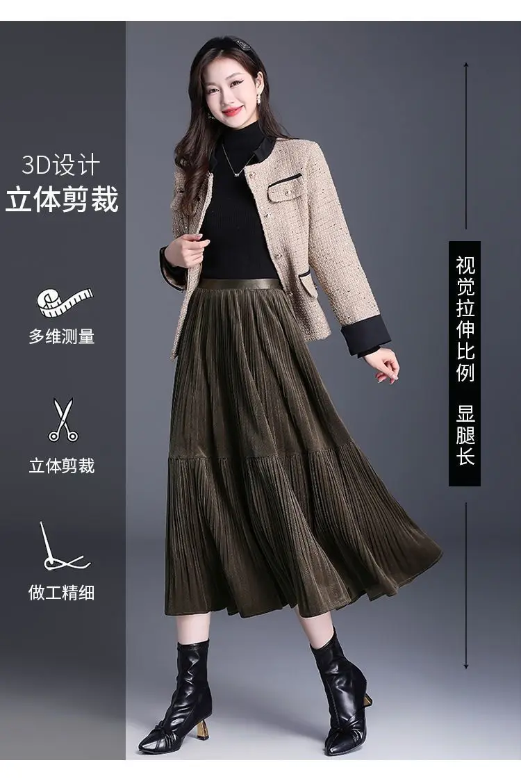 Nuova gonna a pieghe in velluto dorato autunno e inverno Gonna slim elastica e alla moda a vita alta di media lunghezza