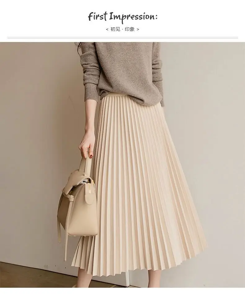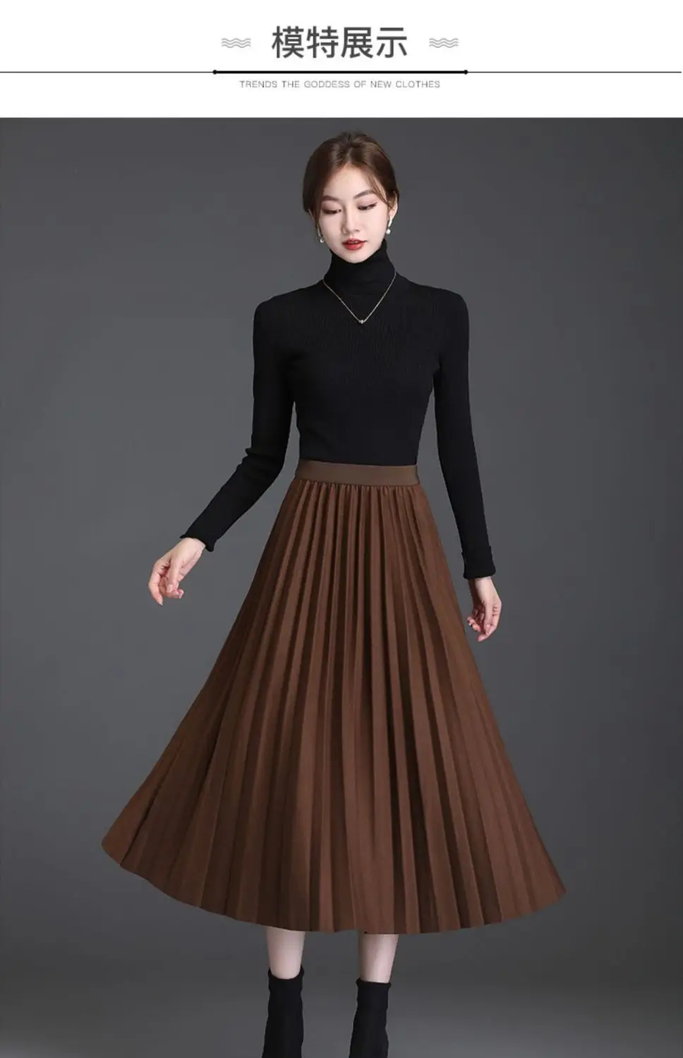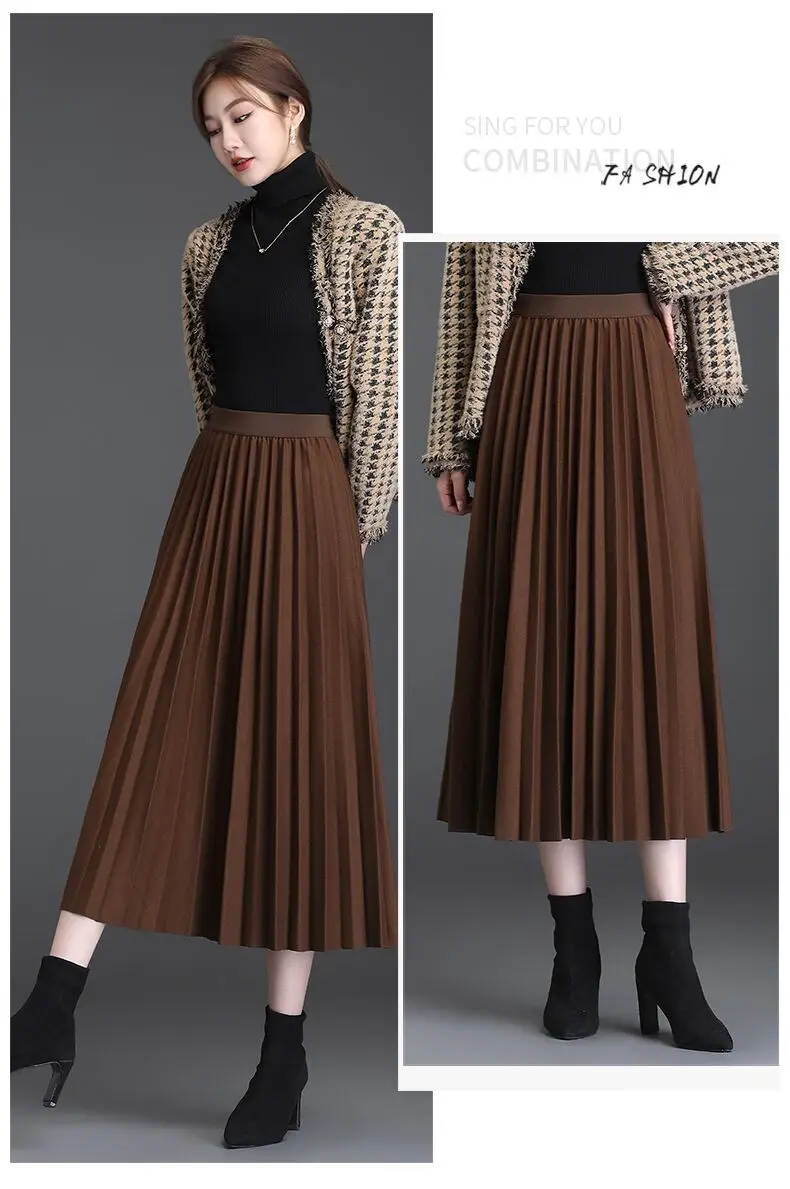 Nuova gonna a pieghe tinta unita a vita alta autunno inverno tutto-fiammifero sciolto gioventù Vintage gonna a trapezio moda elegante abbigliamento donna 1Nuova gonna a pieghe tinta unita a vita alta autunno inverno tutto-fiammifero sciolto gioventù Vintage gonna a trapezio moda elegante abbigliamento donna