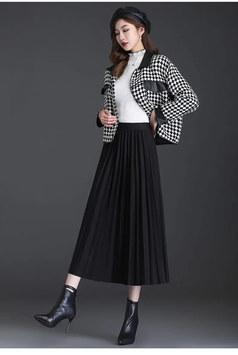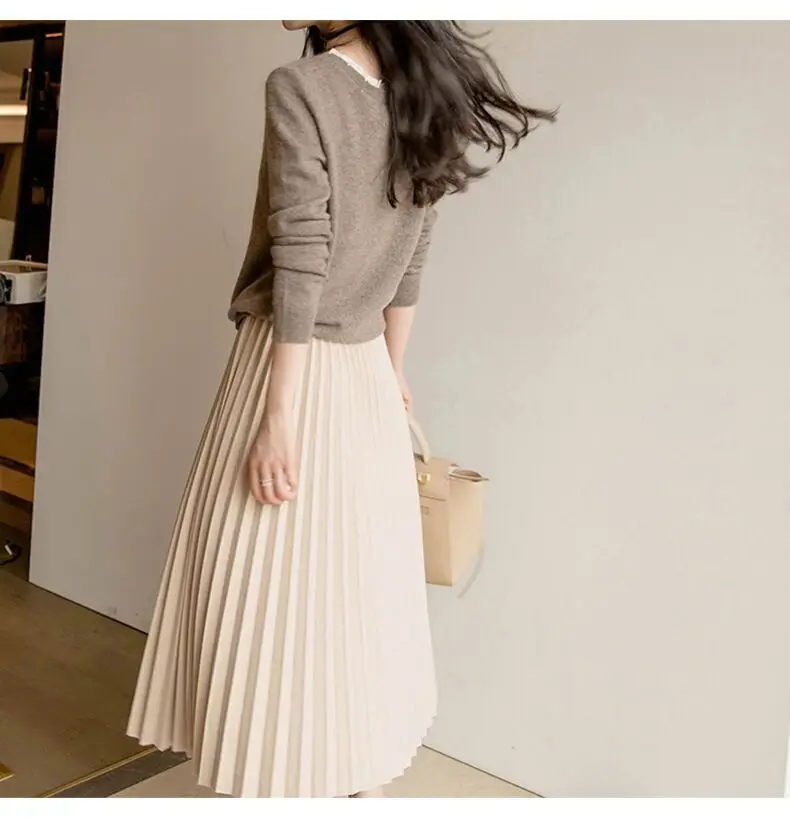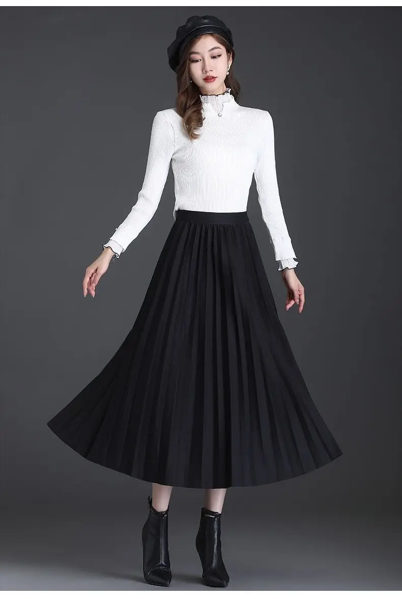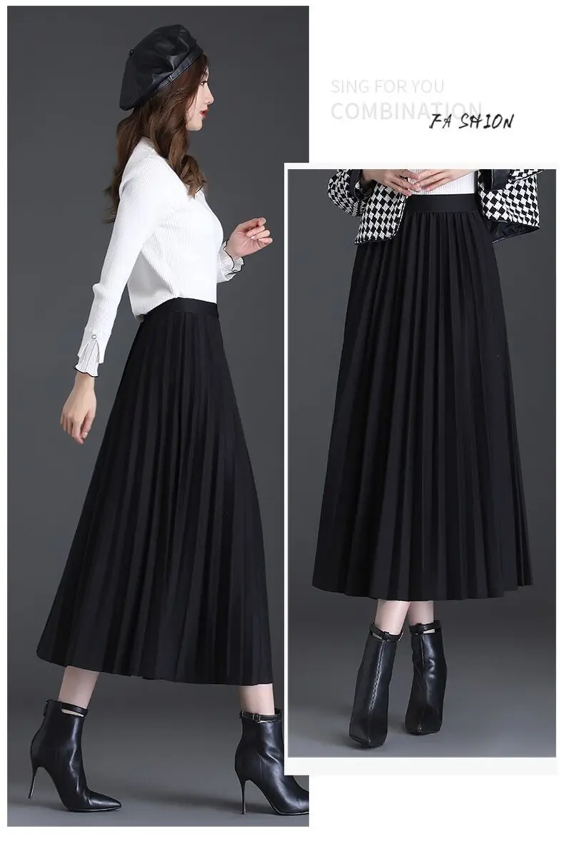 Nuova gonna a pieghe tinta unita a vita alta autunno inverno tutto-fiammifero sciolto gioventù Vintage gonna a trapezio moda elegante abbigliamento donna 1Nuova gonna a pieghe tinta unita a vita alta autunno inverno tutto-fiammifero sciolto gioventù Vintage gonna a trapezio moda elegante abbigliamento donna
