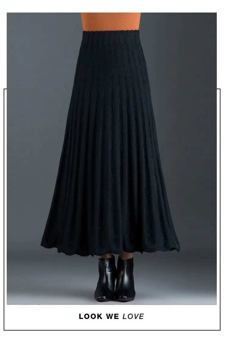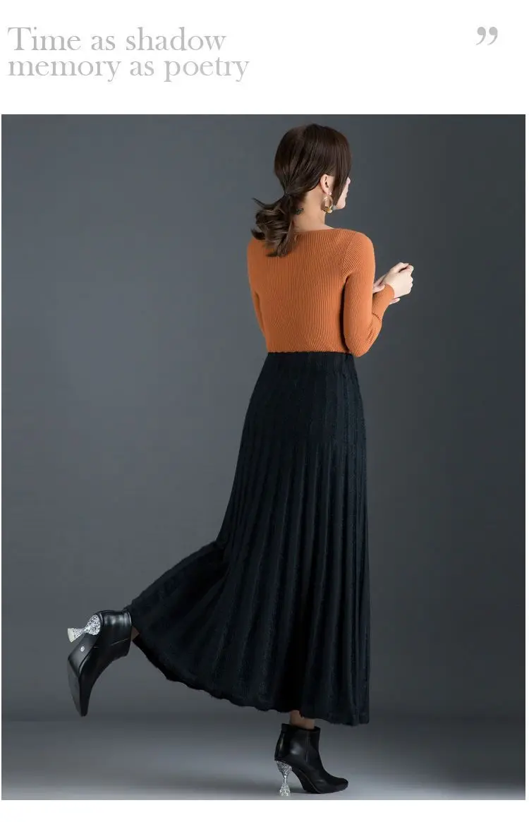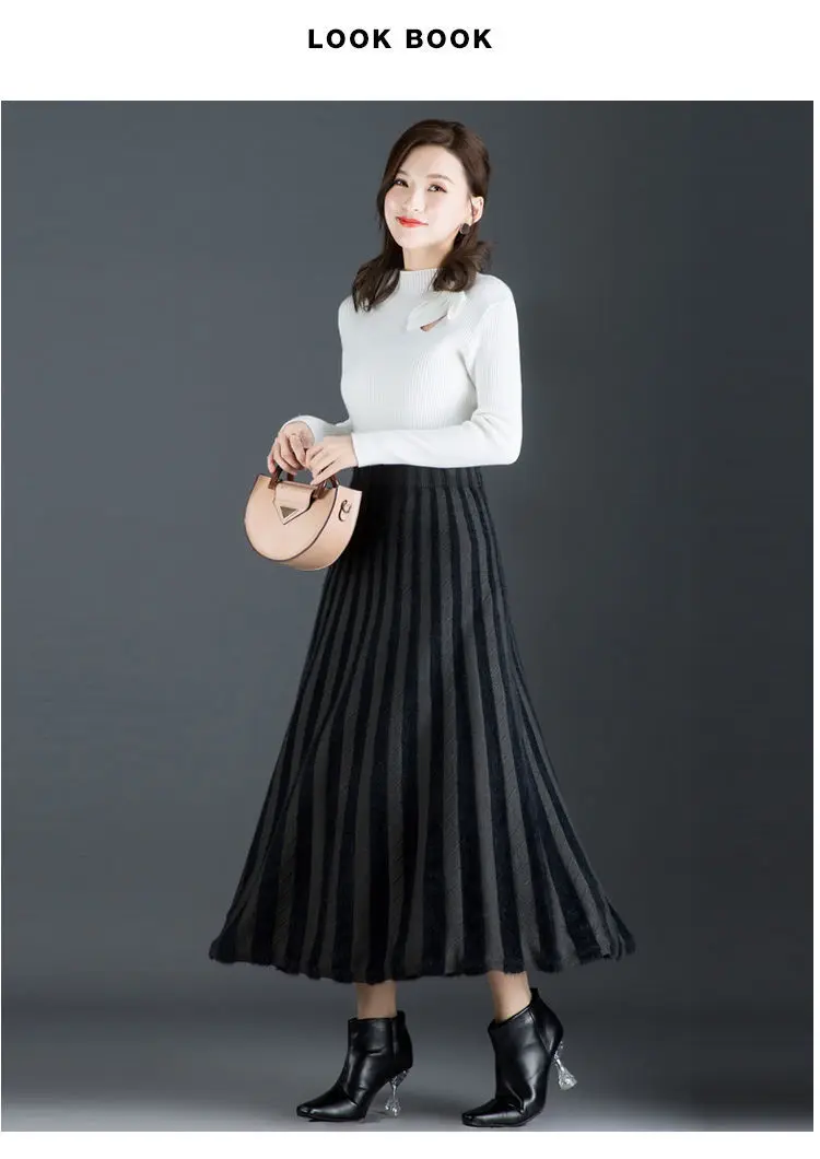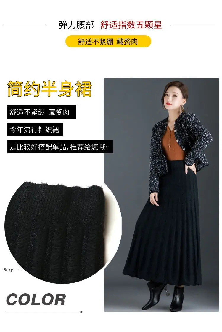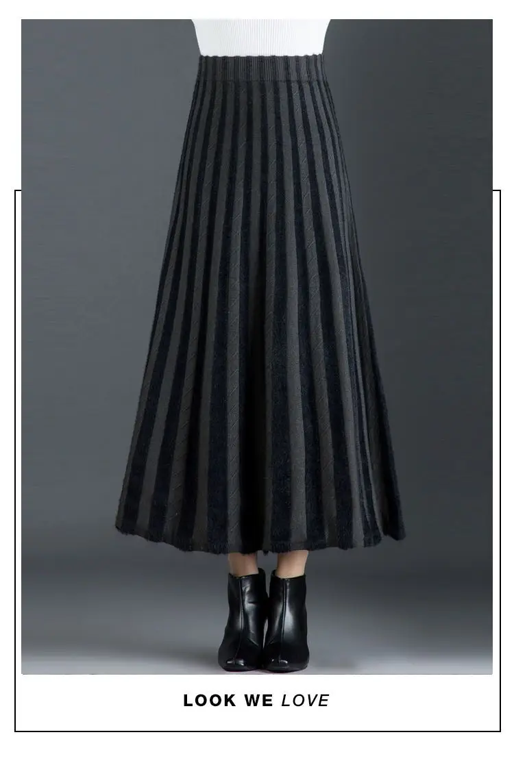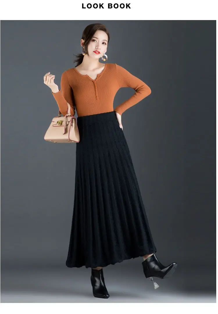 Nuova gonna lavorata a maglia sottile a trapezio spessa pieghettata in lana a vita alta autunno e inverno