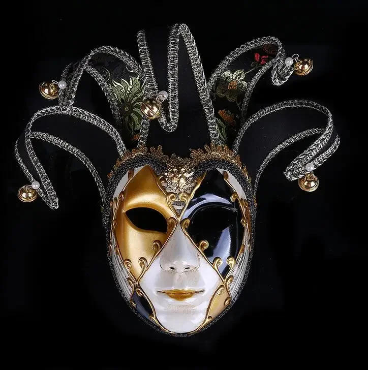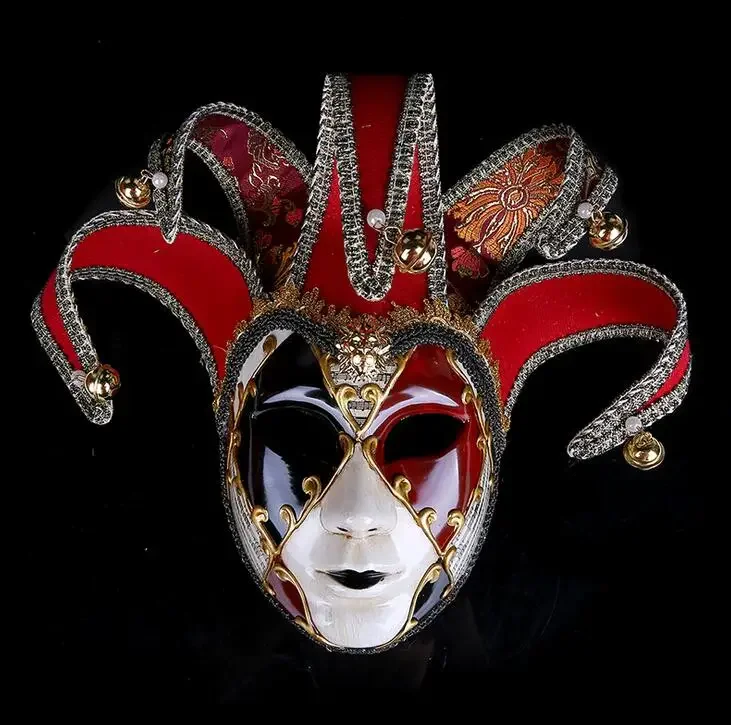 Nuova maschera da clown Masquerade per adulti Venezia Maschere viola retrò Full Face Cosplay Spaventoso Halloween Maschera da strega Puntelli Donna Uomo