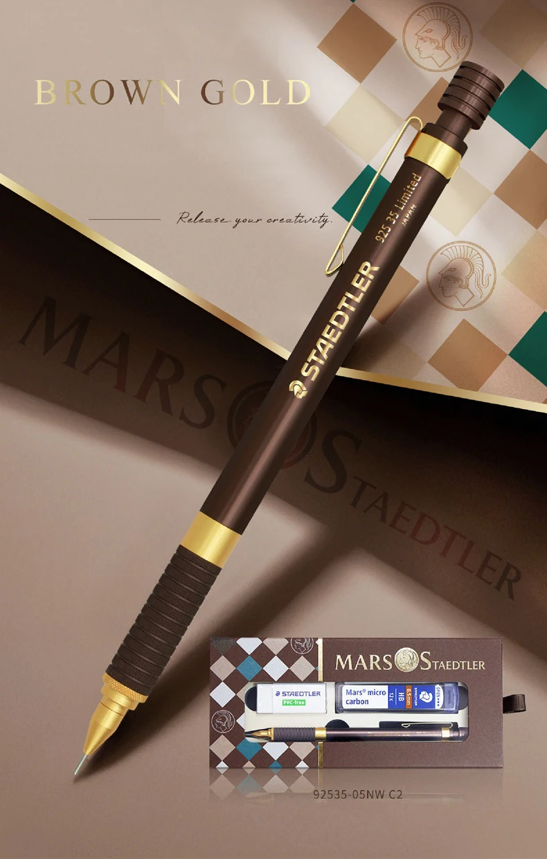 Nuova matita automatica tedesca STAEDTLER 925 cioccolato marrone oro edizione limitata da 0,5 mm