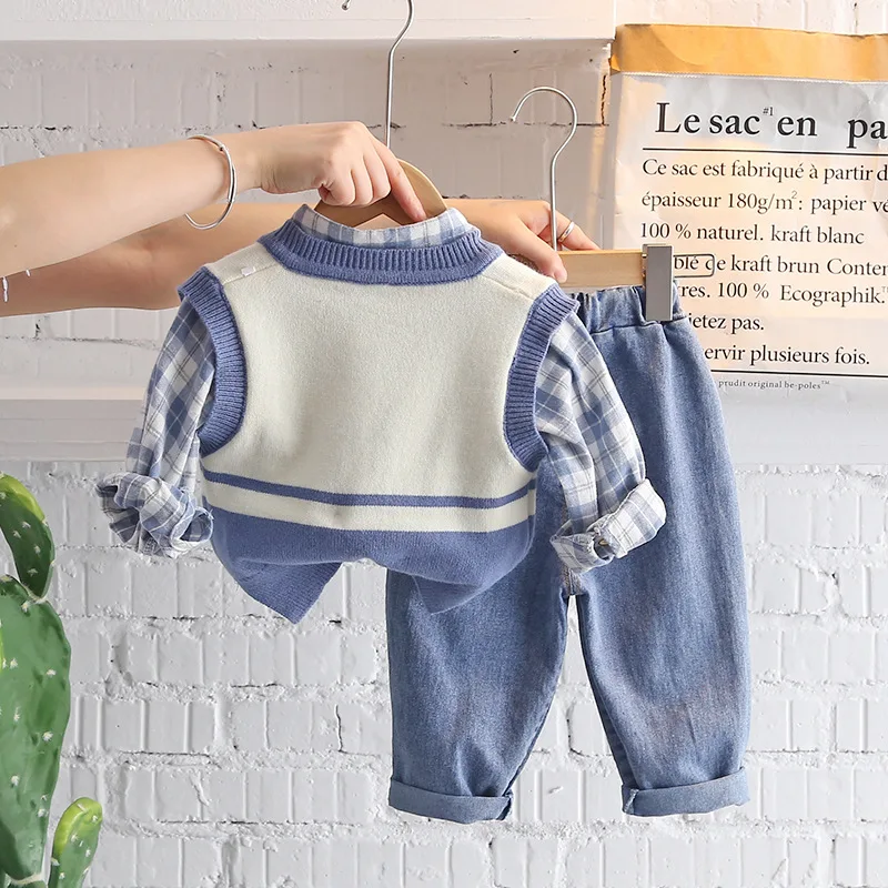 Nuova primavera autunno vestiti per bambini vestito bambini ragazzi moda camicia scozzese gilet pantaloni 3 pezzi/set bambino costume casual tute per bambini per 0-5 anni