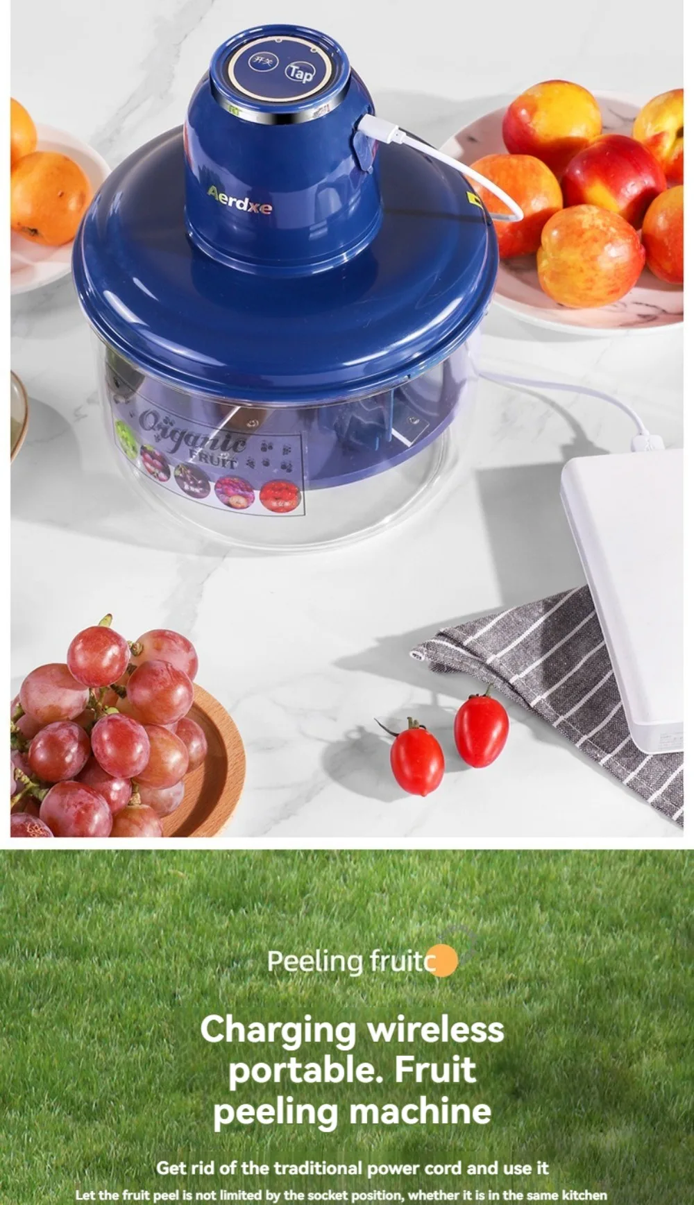 ???? Portable Rechargeable Design – Use Anytime, Anywhere! Featuring a built-in rechargeable battery, this peeler is compact and cordless, making it perfect for home or on-the-go use without the need for a power outlet.