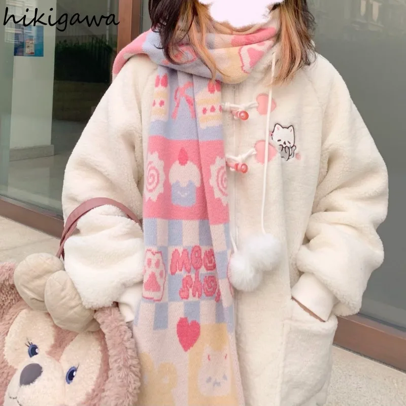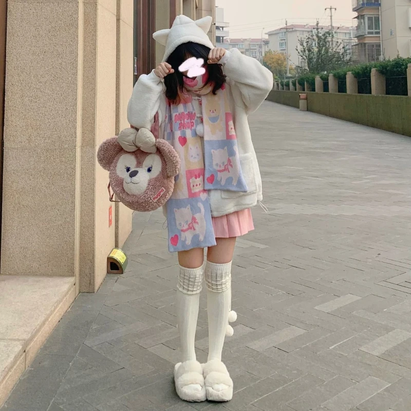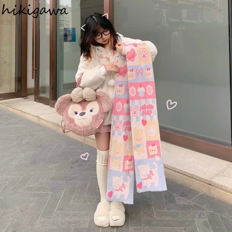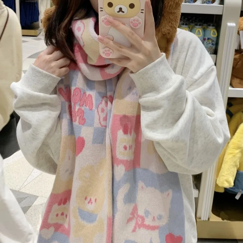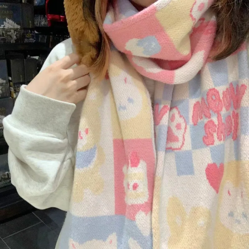Nuova Sciarpa 2025 Autunno Inverno Donna Sciarpa carina Cartoon Lana Addensata Sciarpa lavorata a maglia per le donne Ragazze calde Piccolo scialle femminile 7p010
