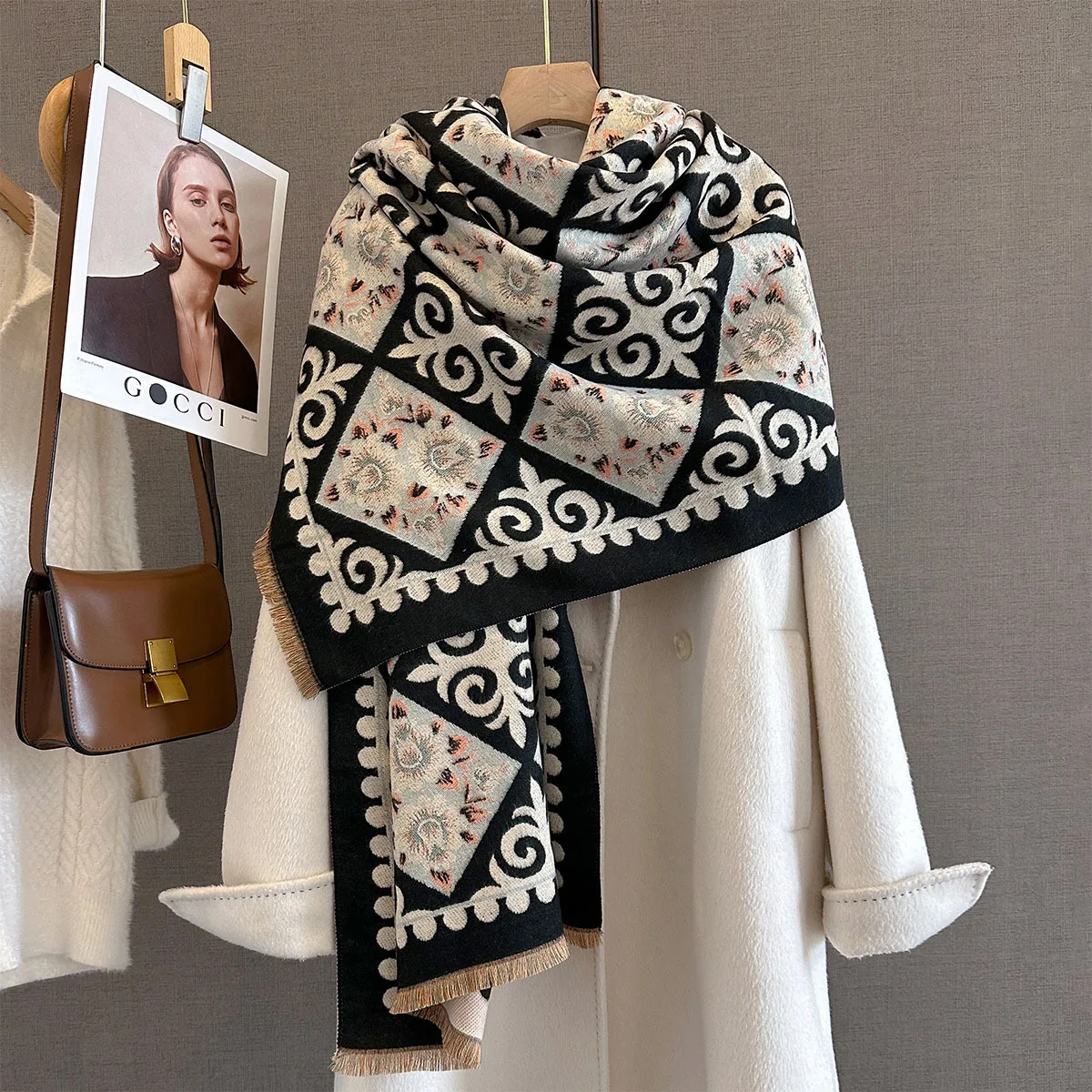 Nuova sciarpa stampata multifunzionale autunno inverno Versatile ed elegante protezione del collo Sciarpe calde antivento Scialle per le donne di lusso