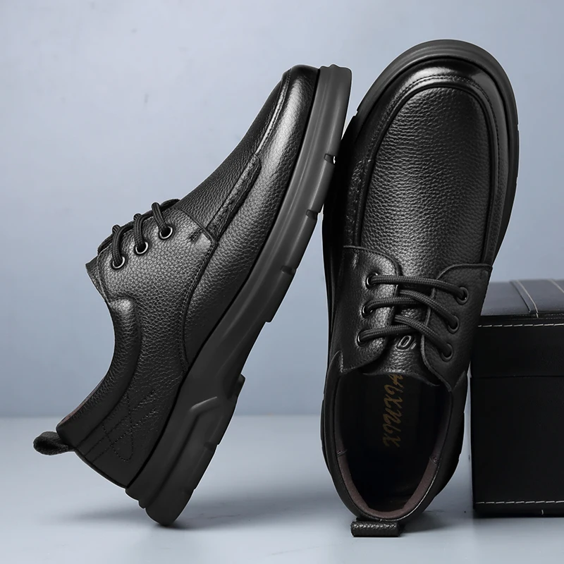 Nuove scarpe in vera pelle di alta qualità Scarpe basse da uomo Scarpe casual da uomo di moda Uomo di marca Morbido e confortevole con lacci Nero
