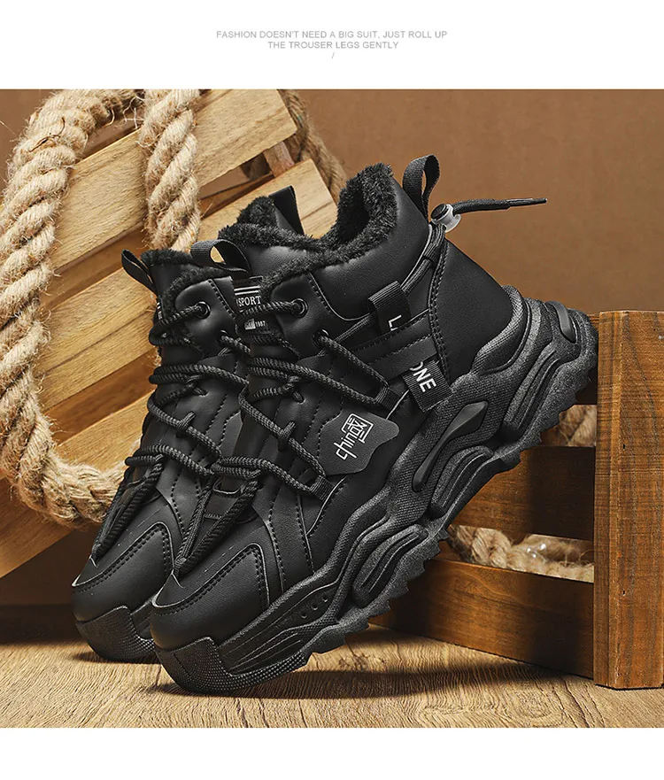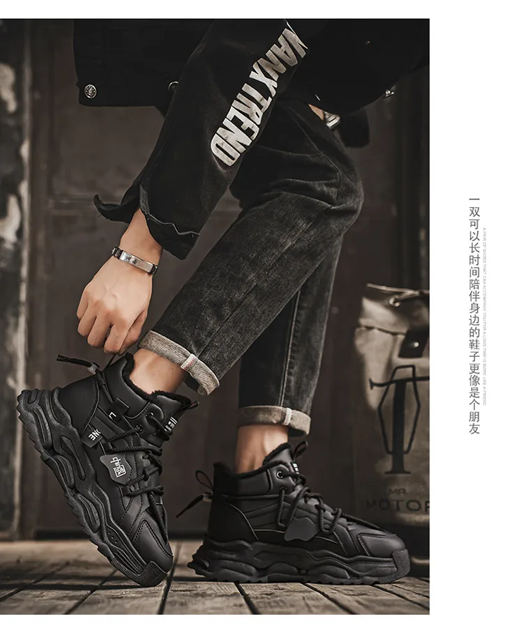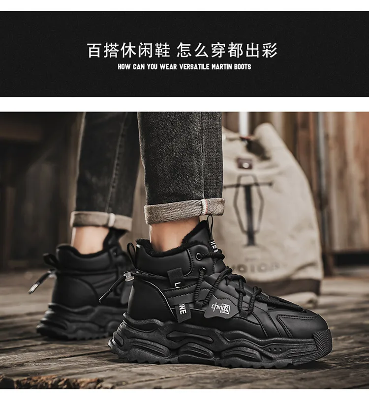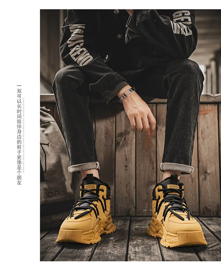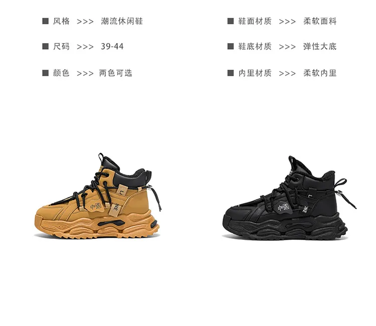 Nuove scarpe invernali da uomo alte con pile aggiunto e calore ispessito, scarpe di cotone giallo e stivali da neve integrati in pelliccia